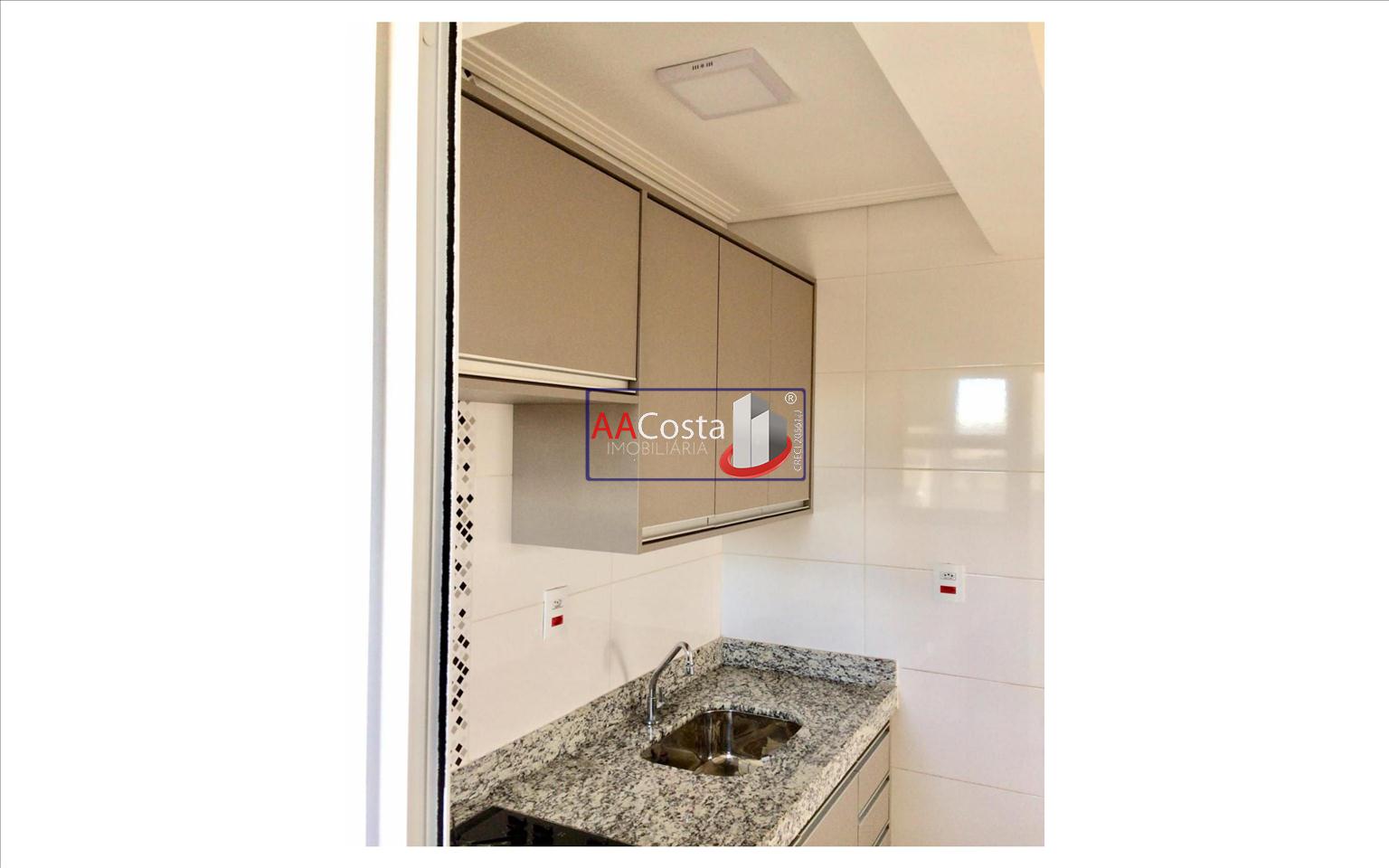 Apartamento com 02 quartos sendo 01 suíte, 01 banheiro sociall sala de TV, cozinha com armários, área de serviço, garagem coberta para 02 carros. Prédio com portaria 24 horas, elevador, brinquedoteca, salão de festas e academia. Na taxa de condomínio já está incluso água e gás.