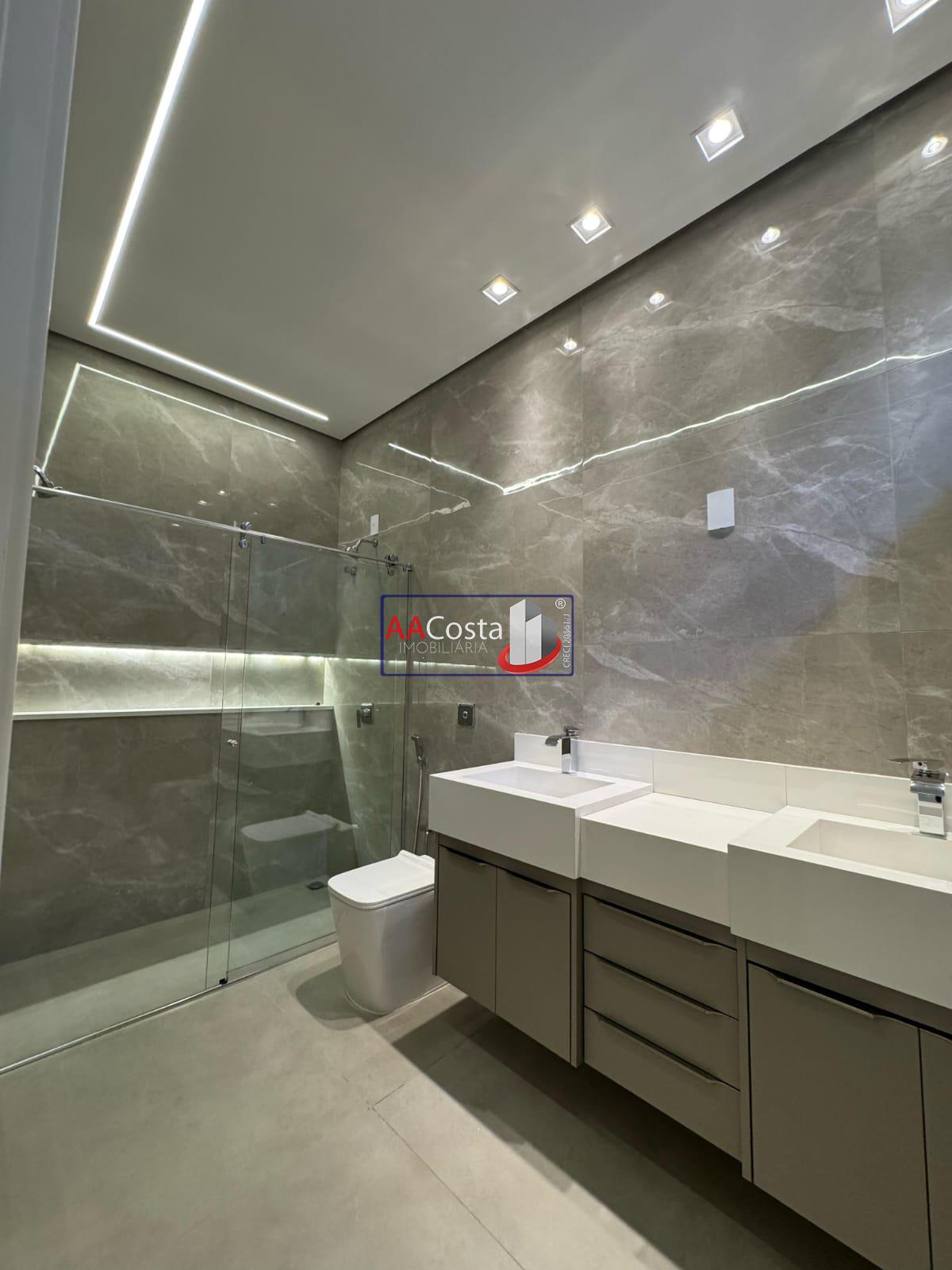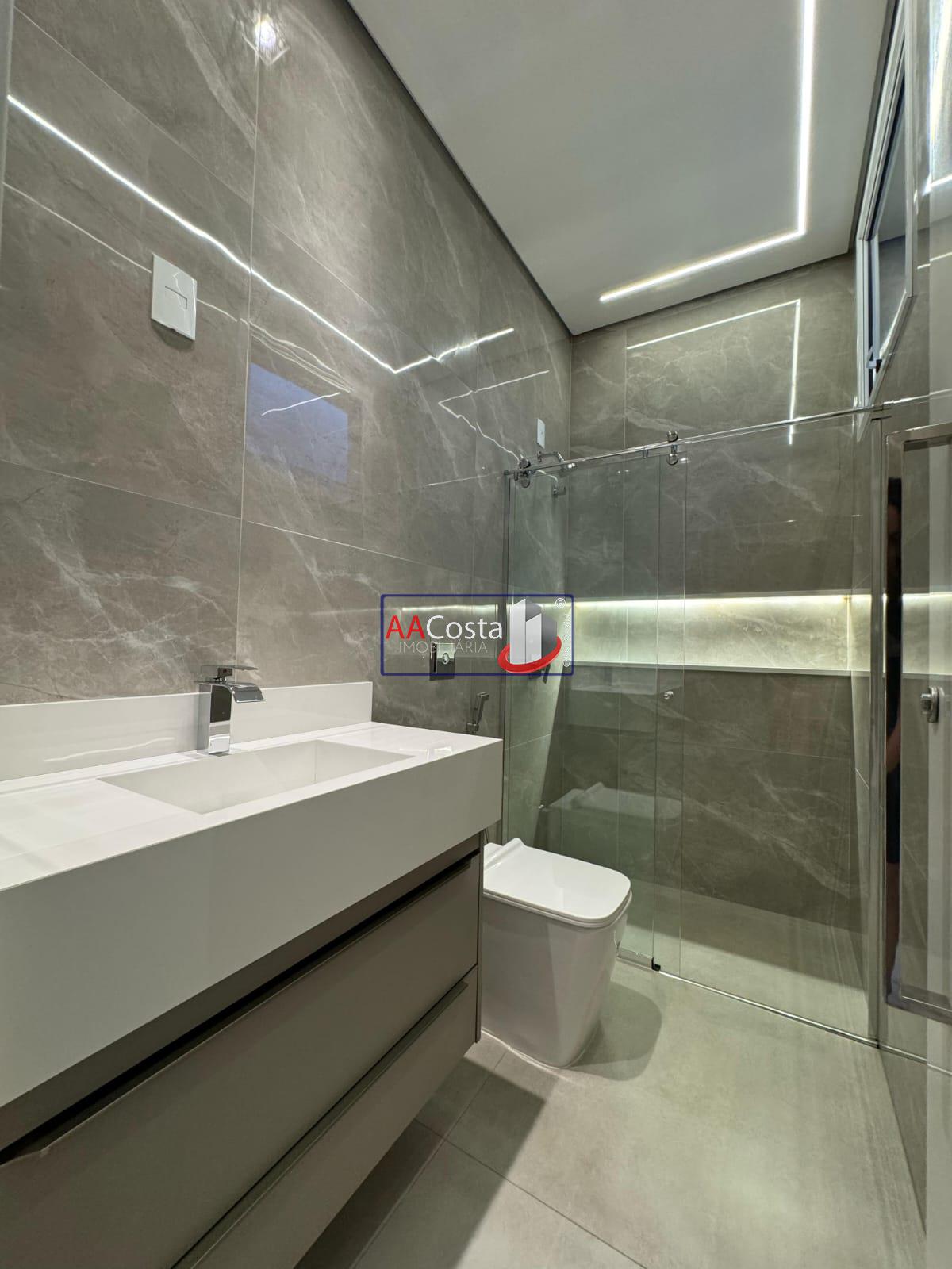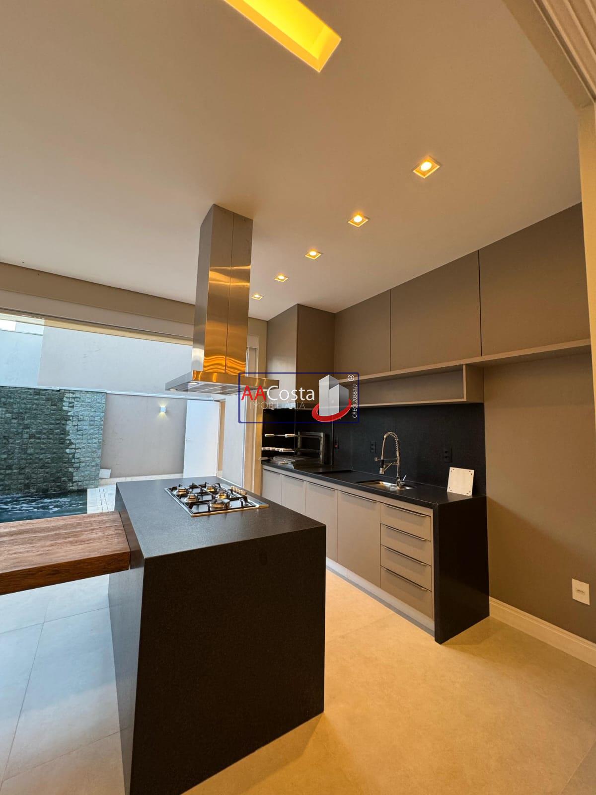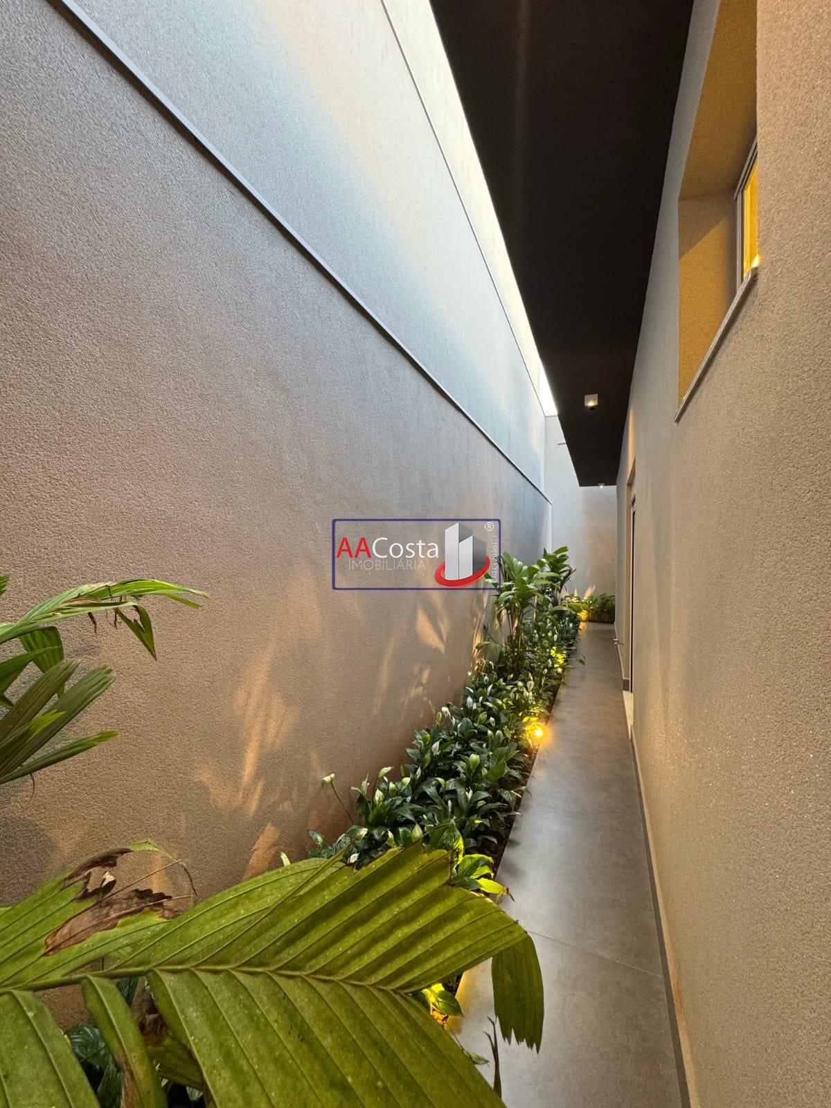 Terreno 360 metro. Área construída de 216 metros. Sala com pé direito alto, rico em iluminação e lustre com painel planejado. Porta com fechadura eletrônica. Cozinha interna com torre de fornos, geladeira, lava louças e fogão de indução. Granito branco Nanoglas. Cozinha integrada com a sala de jantar com iluminação e lustre. Lavanderia ampla com duas bacias e armários. Despensa com armários Infraestrutura para aspiração. Irrigação automática do jardim. Jardim com plantas formadas. Lavabo com lindo revestimento em pedras naturais. Roupeiro planejado no corredor. 03 suítes com ar-condicionado instalado. Suíte master com closet e bancada dupla no WC. Todos os WC com box instalado. Janelas automatizadas nos dormitórios. Área gourmet com ilha, fogão marca Invitta, mesa rústica acoplada na ilha. Toldo automático entre a piscina e a área gourmet. Piscina revestida na pedra hijau, com cascata e hidromassagem. Aquecimento solar. Garagem coberta com espaço para 02 carros. Ponto para carregamento de carro elétrico.