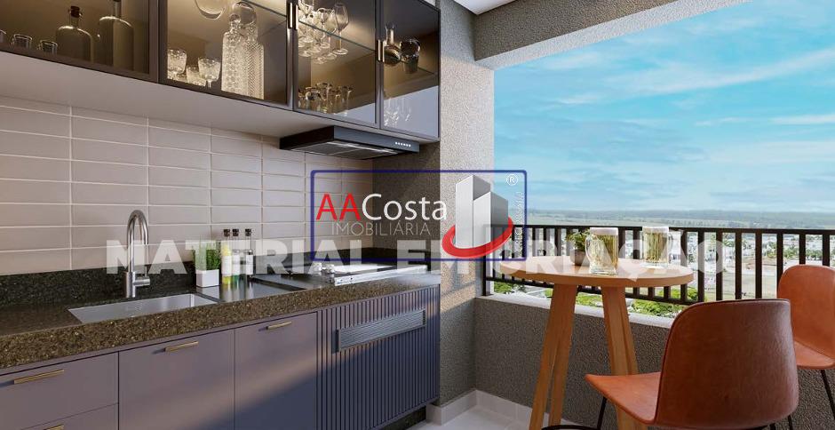 03 Quartos sendo 01, lavabo, sala e cozinha integradas, varanda gourmet, ponto de ar condicionado, chuveiros com aquecimento a gas. Condominio completo com piscina, area de churrasco, academia, salao de festa, pet care.