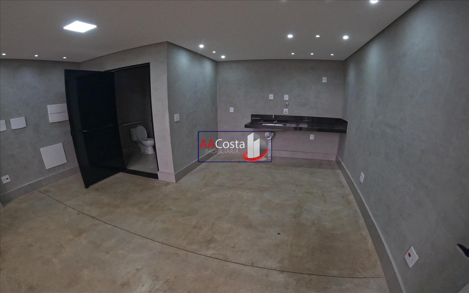 Sala comercial com 02 pavimentos sendo, térreo com 01 banheiro social com acessibilidade e copa, superior com 01 banheiro social.