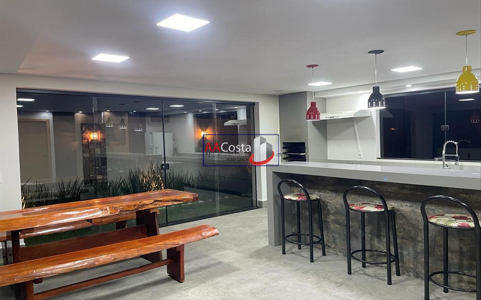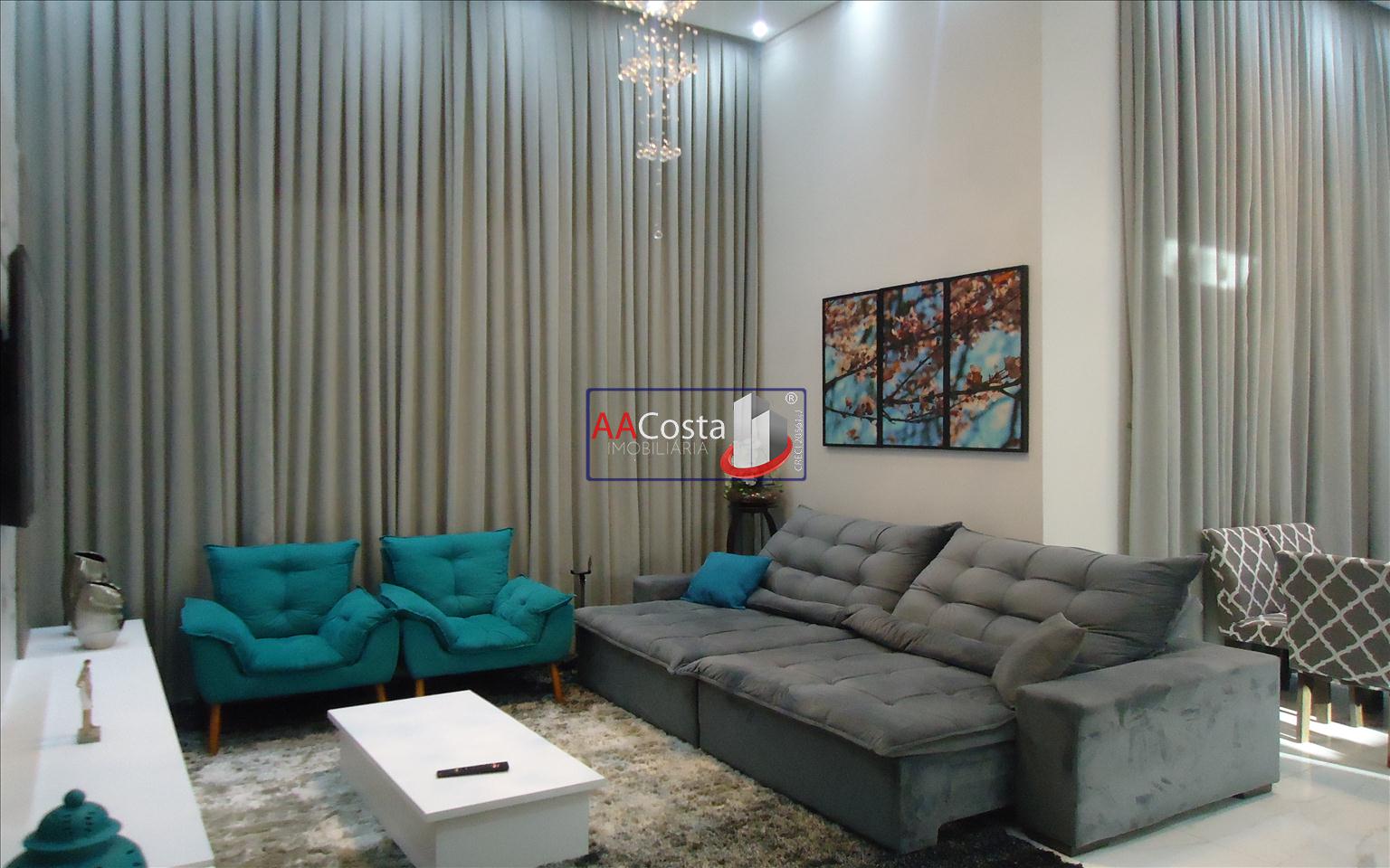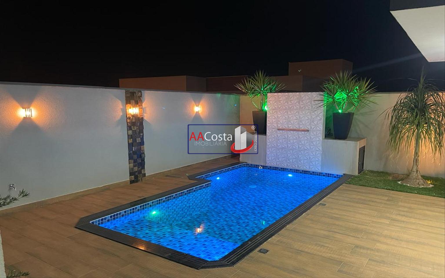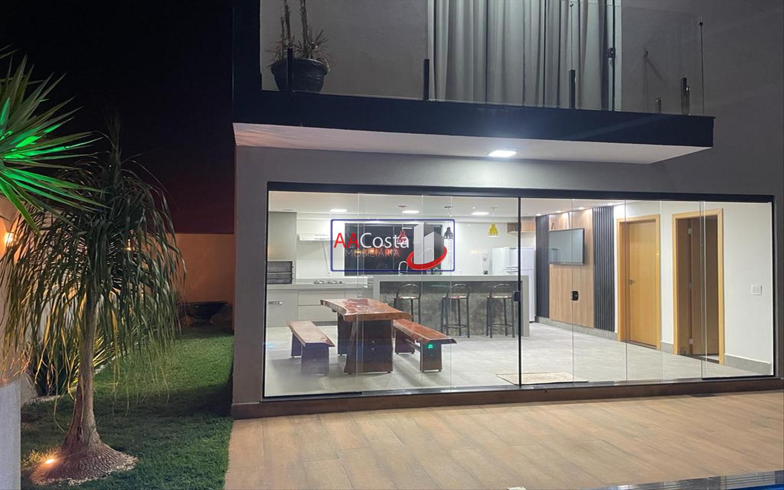 Sobrado em condomínio de alto padrão, com 04 suítes sendo uma delas a suíte master com closet e sacada, escritório, 01 lavabo, sala de TV integrada com a sala de jantar e com pé direito duplo, cozinha com armários, lavanderia com armários, área gourmet com churrasqueira, piscina aquecida e com iluminação em led, garagem coberta para 02 carros. Imóvel rico em armários e blindex, encanamento para água quente e poço artesiano.