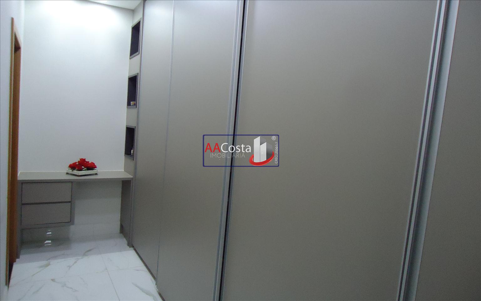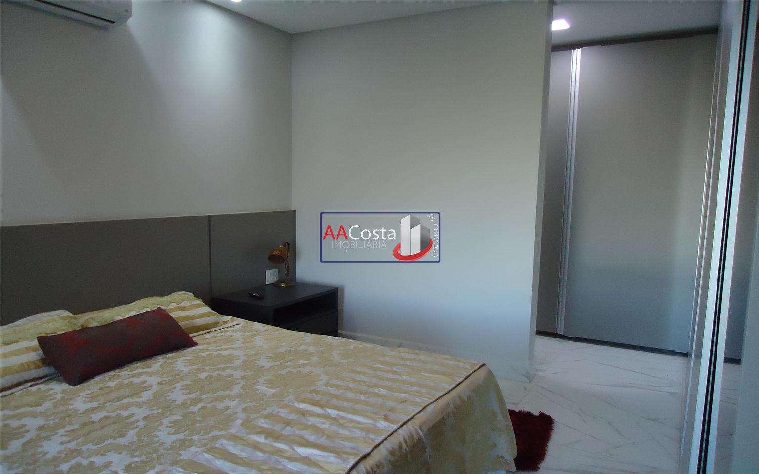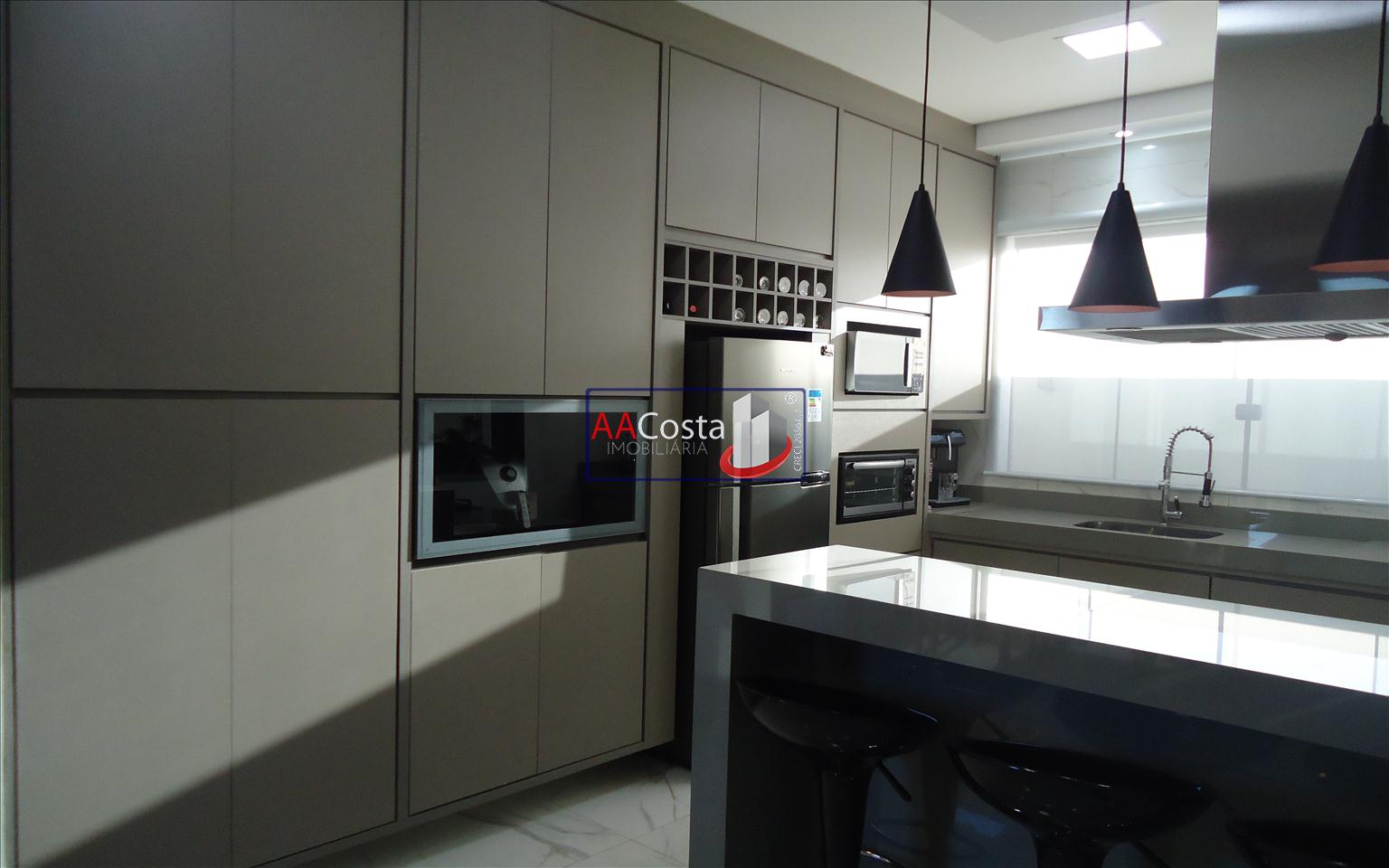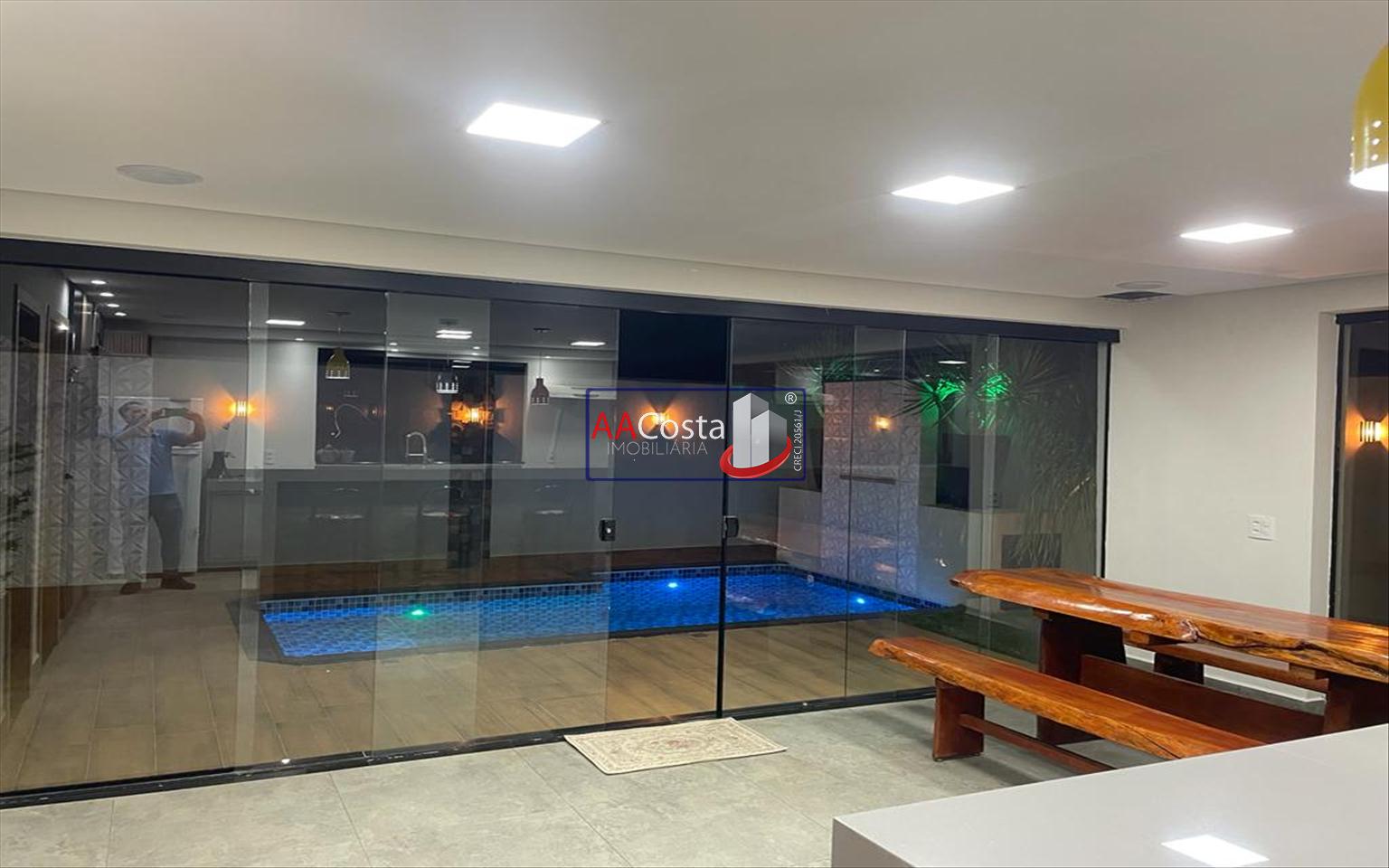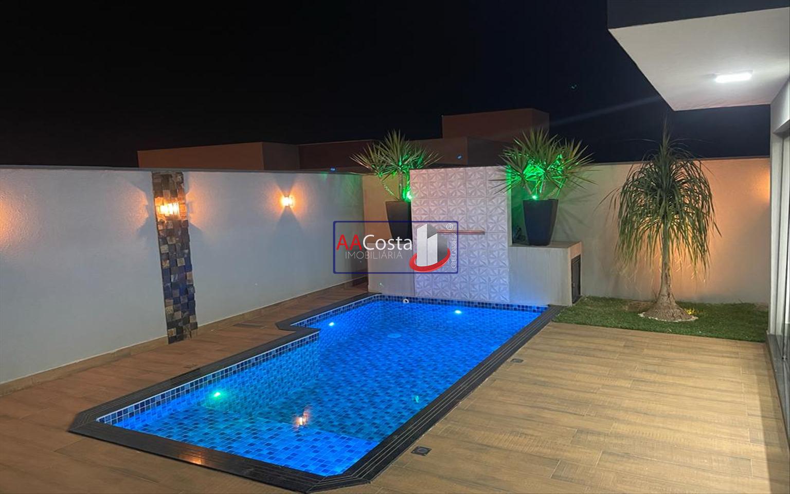Sobrado em condomínio de alto padrão, com 04 suítes sendo uma delas a suíte master com closet e sacada, escritório, 01 lavabo, sala de TV integrada com a sala de jantar e com pé direito duplo, cozinha com armários, lavanderia com armários, área gourmet com churrasqueira, piscina aquecida e com iluminação em led, garagem coberta para 02 carros. Imóvel rico em armários e blindex, encanamento para água quente e poço artesiano.