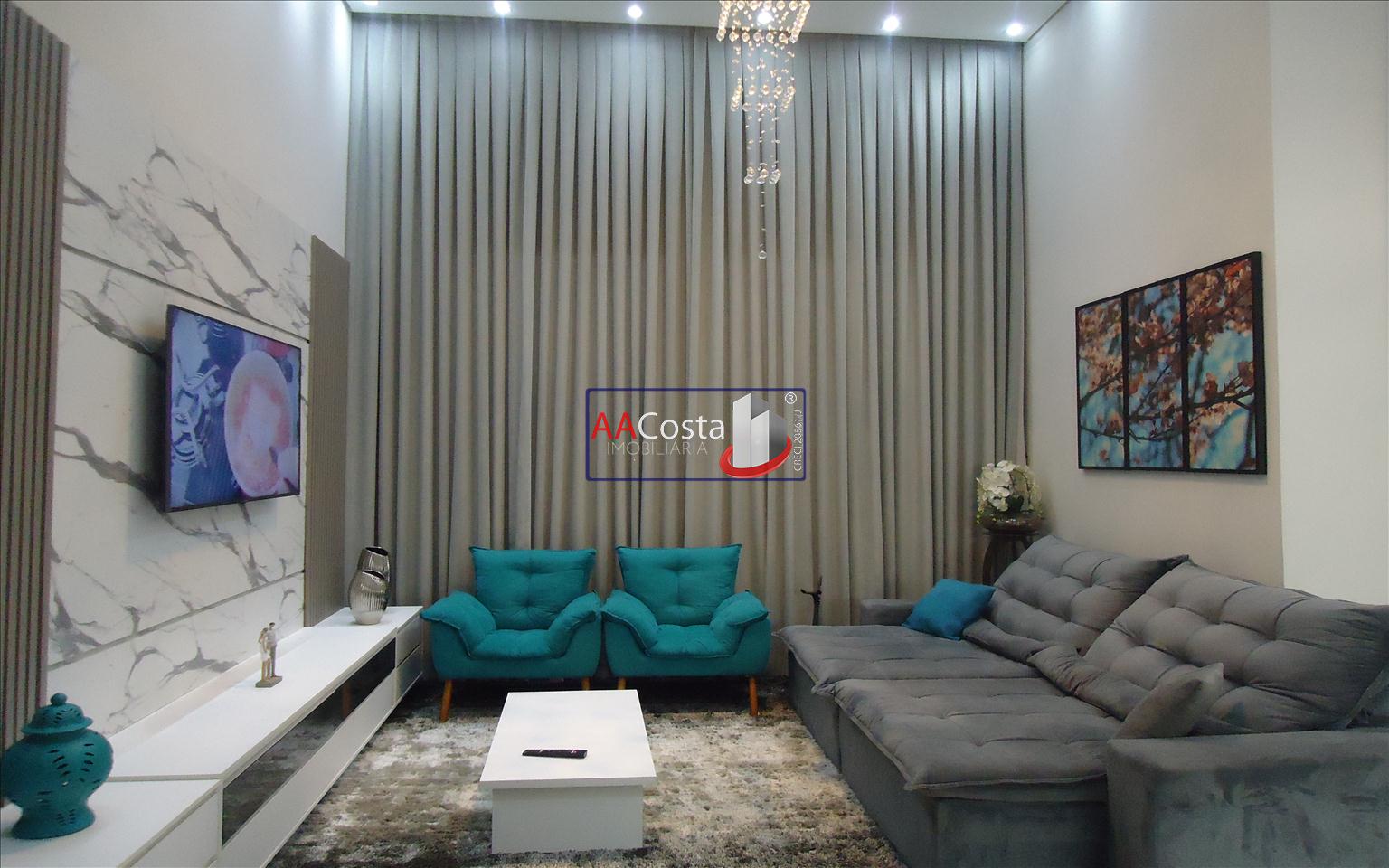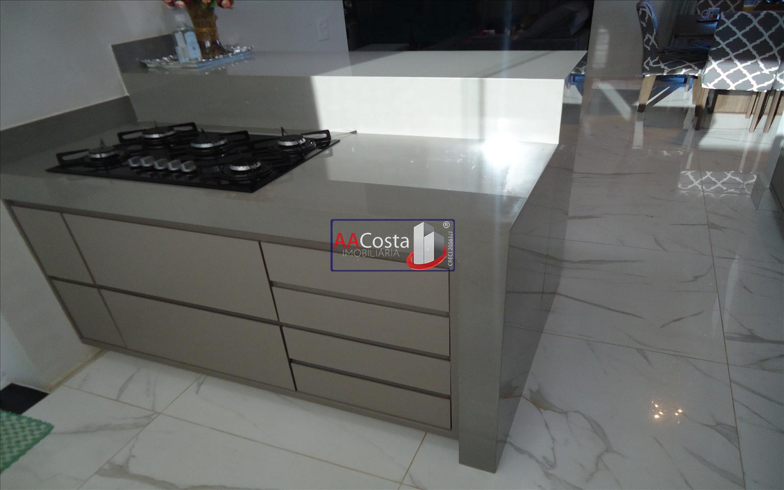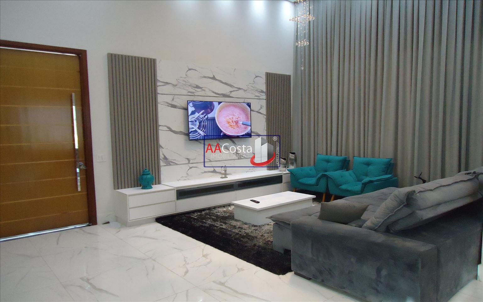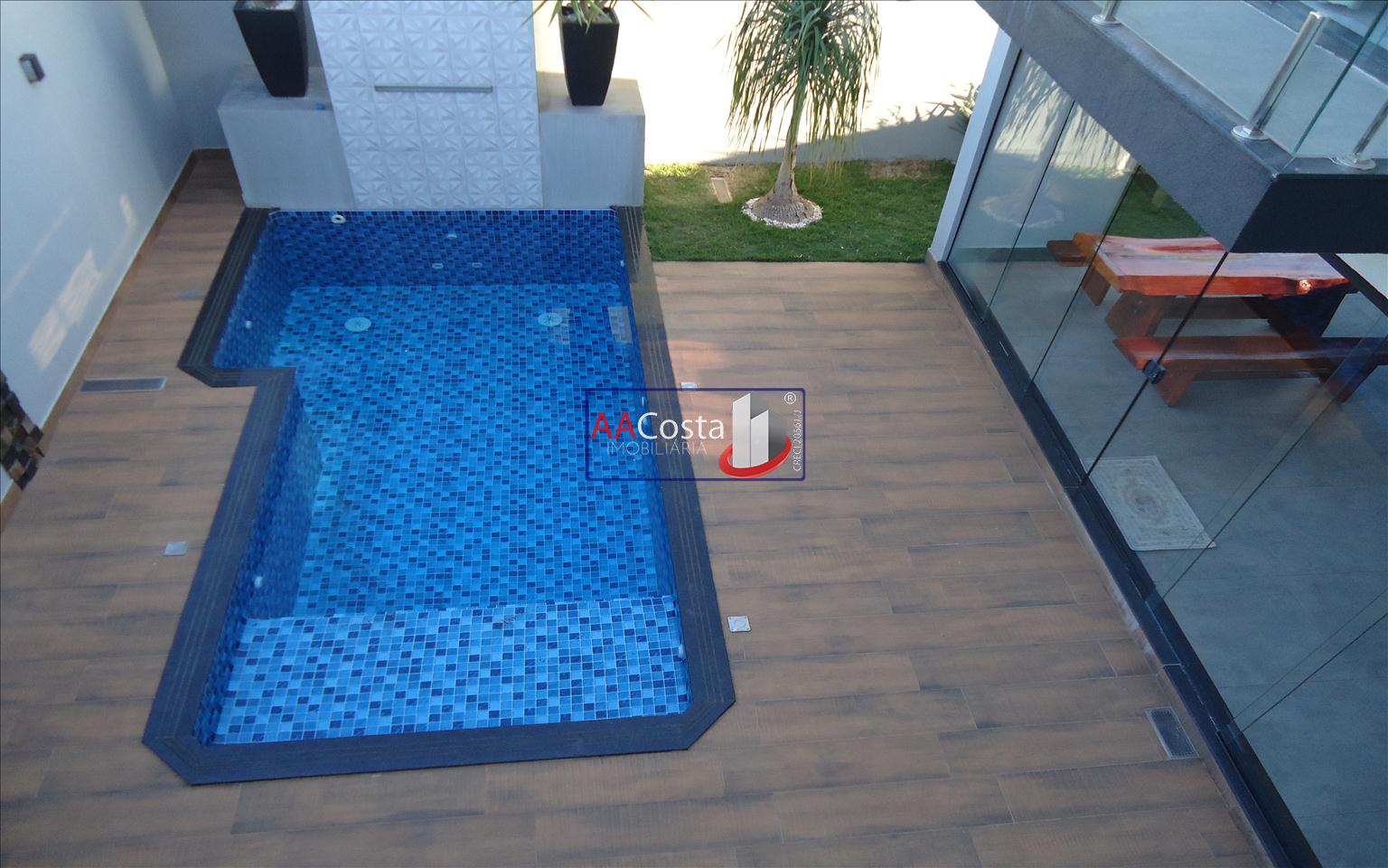 Sobrado em condomínio de alto padrão, com 04 suítes sendo uma delas a suíte master com closet e sacada, escritório, 01 lavabo, sala de TV integrada com a sala de jantar e com pé direito duplo, cozinha com armários, lavanderia com armários, área gourmet com churrasqueira, piscina aquecida e com iluminação em led, garagem coberta para 02 carros. Imóvel rico em armários e blindex, encanamento para água quente e poço artesiano.