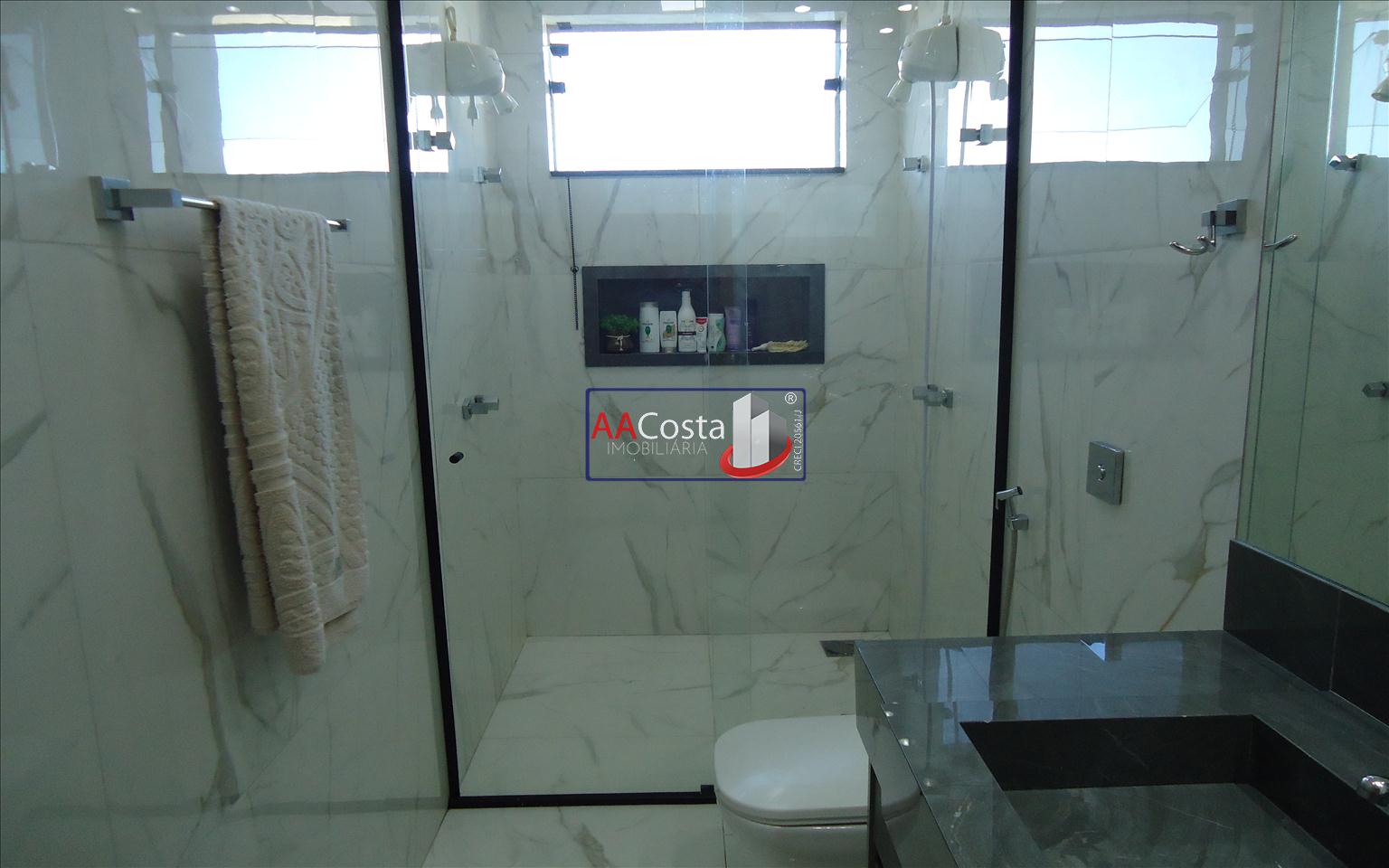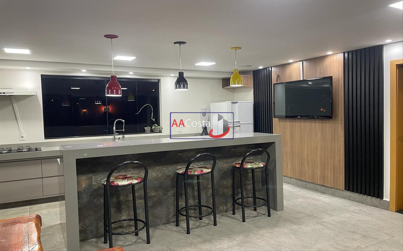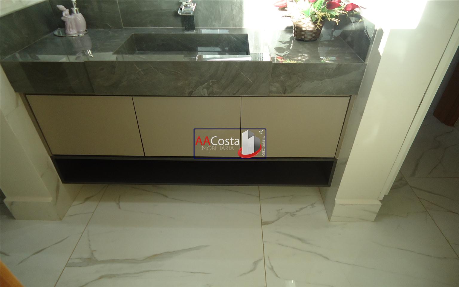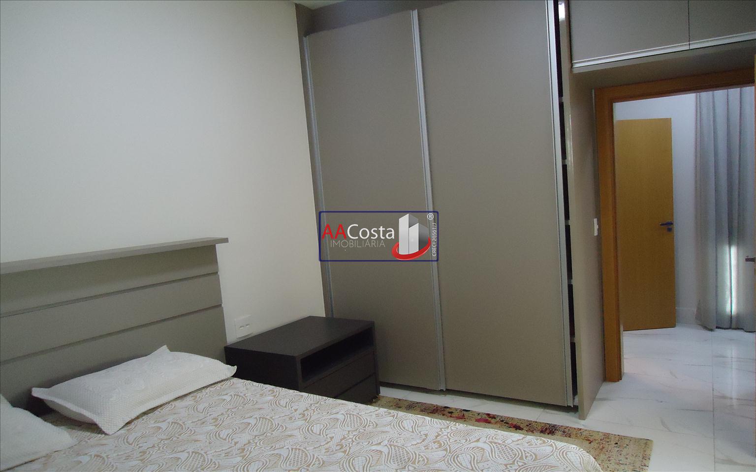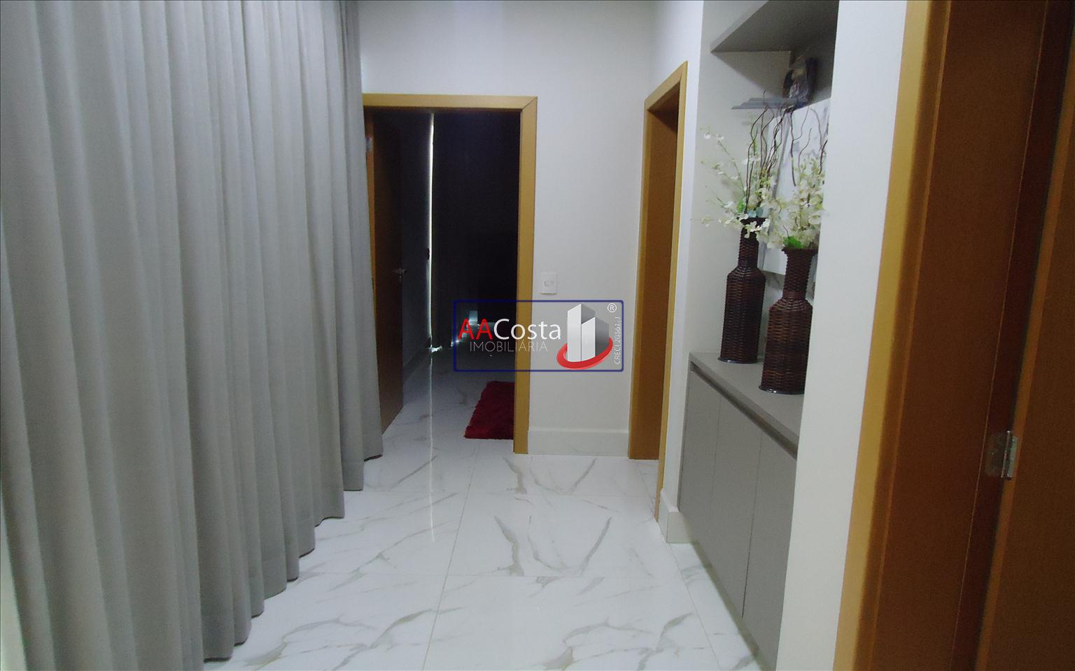Sobrado em condomínio de alto padrão, com 04 suítes sendo uma delas a suíte master com closet e sacada, escritório, 01 lavabo, sala de TV integrada com a sala de jantar e com pé direito duplo, cozinha com armários, lavanderia com armários, área gourmet com churrasqueira, piscina aquecida e com iluminação em led, garagem coberta para 02 carros. Imóvel rico em armários e blindex, encanamento para água quente e poço artesiano.