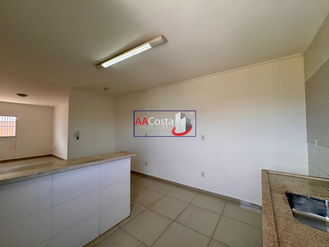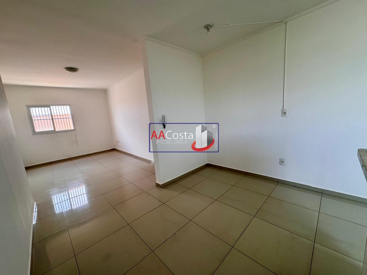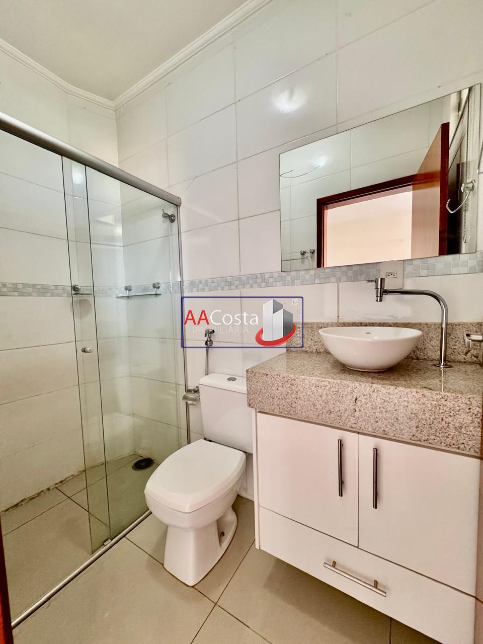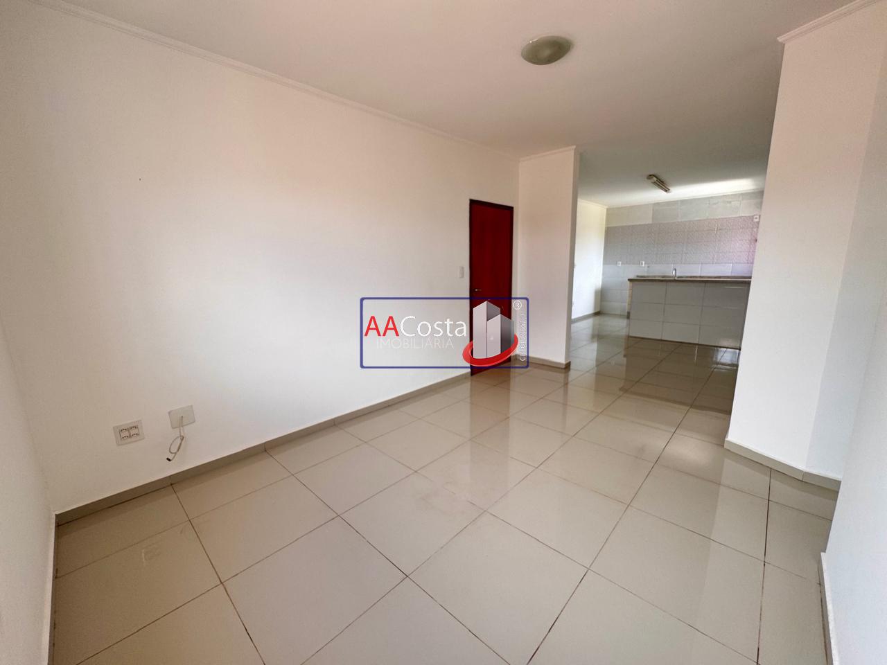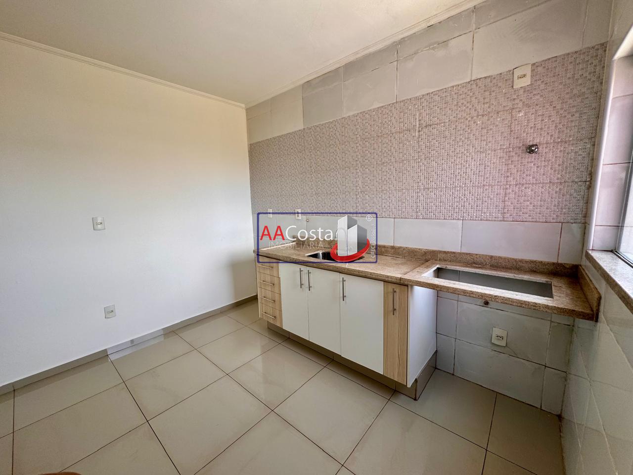Apartamento com 02 quartos sendo 01 suíte, 01 banheiro social, sala de TV, cozinha com armários, área de serviço, garagem coberta para 02 carros. O prédio não possui elevador.