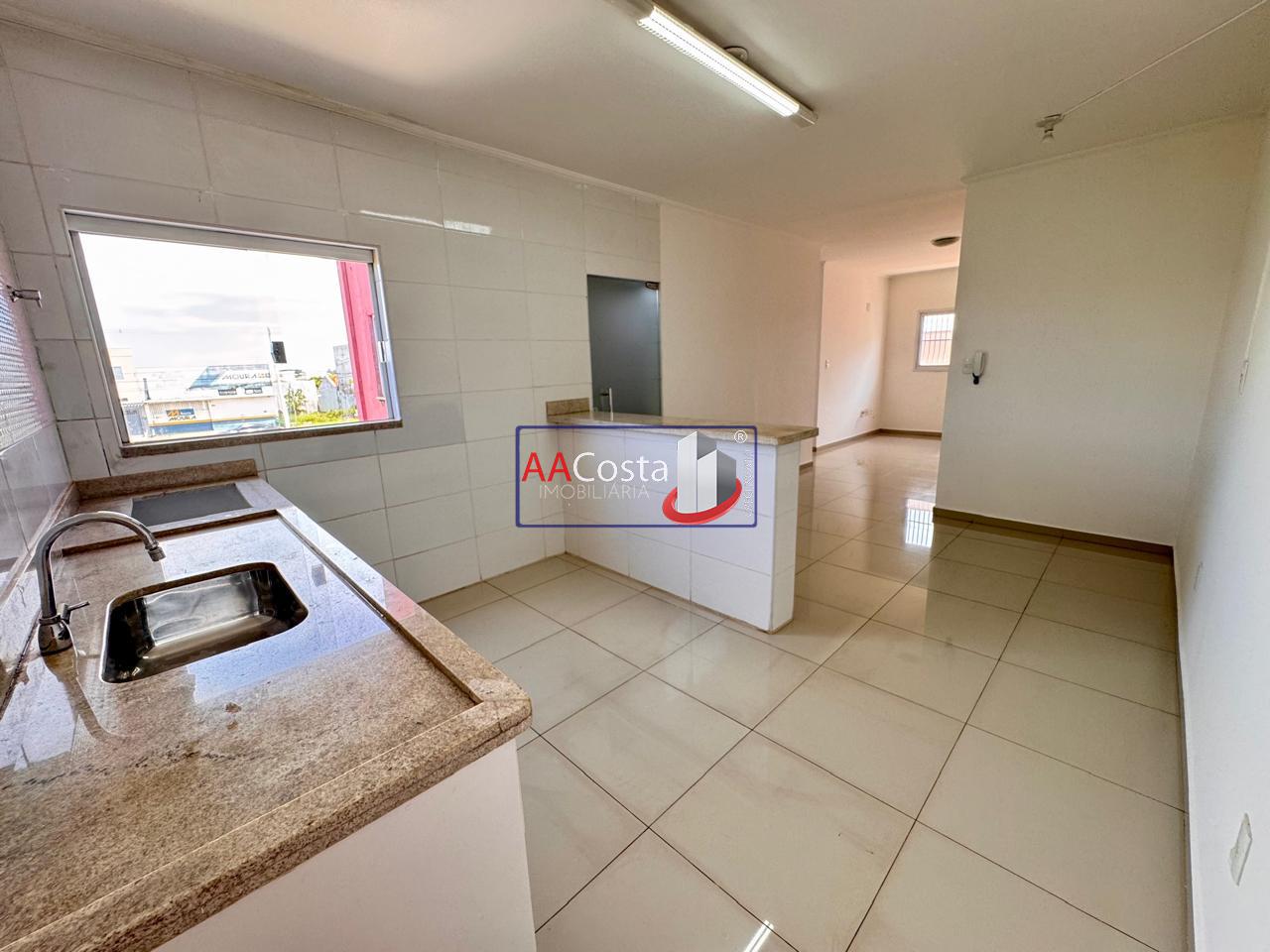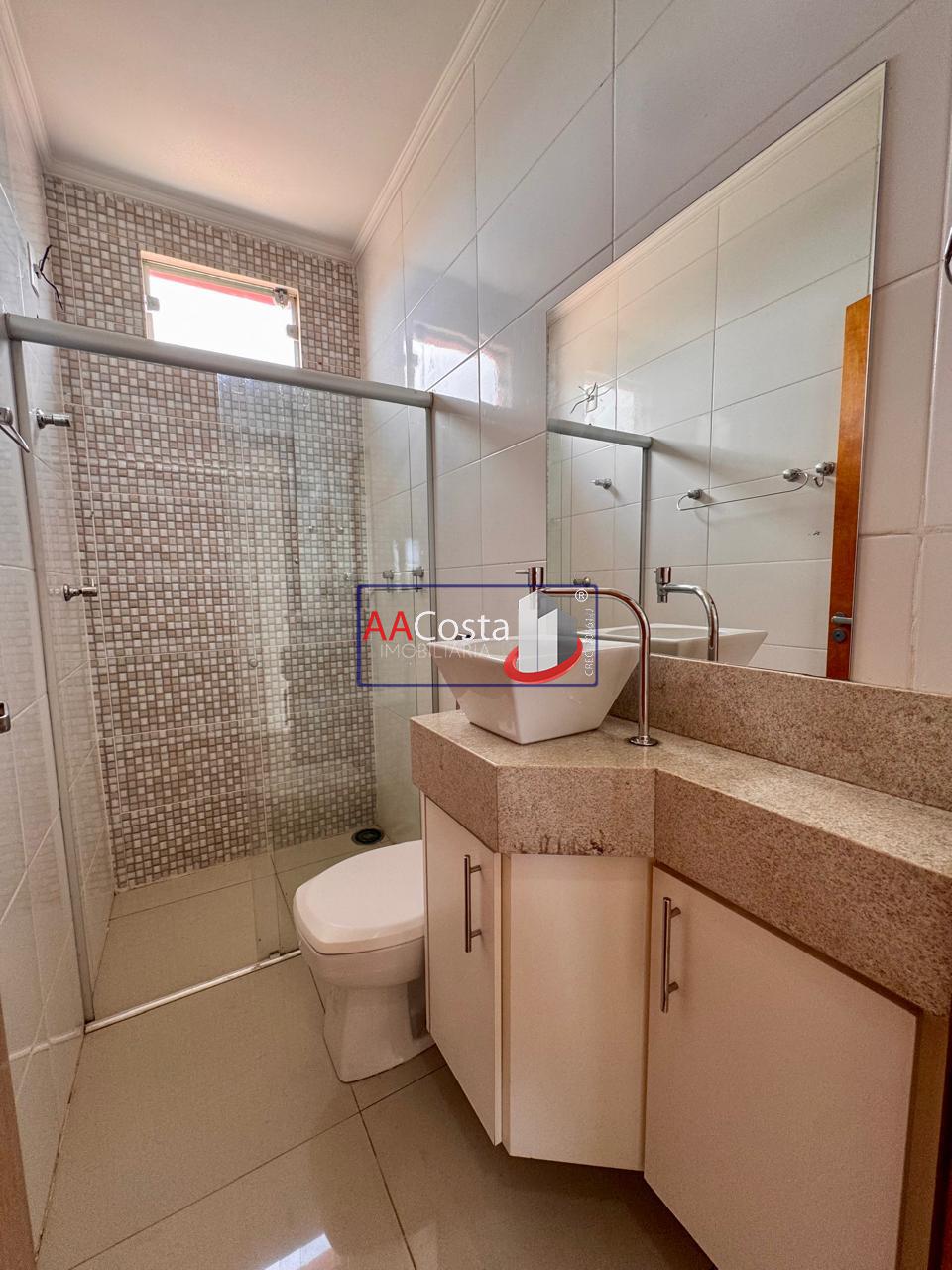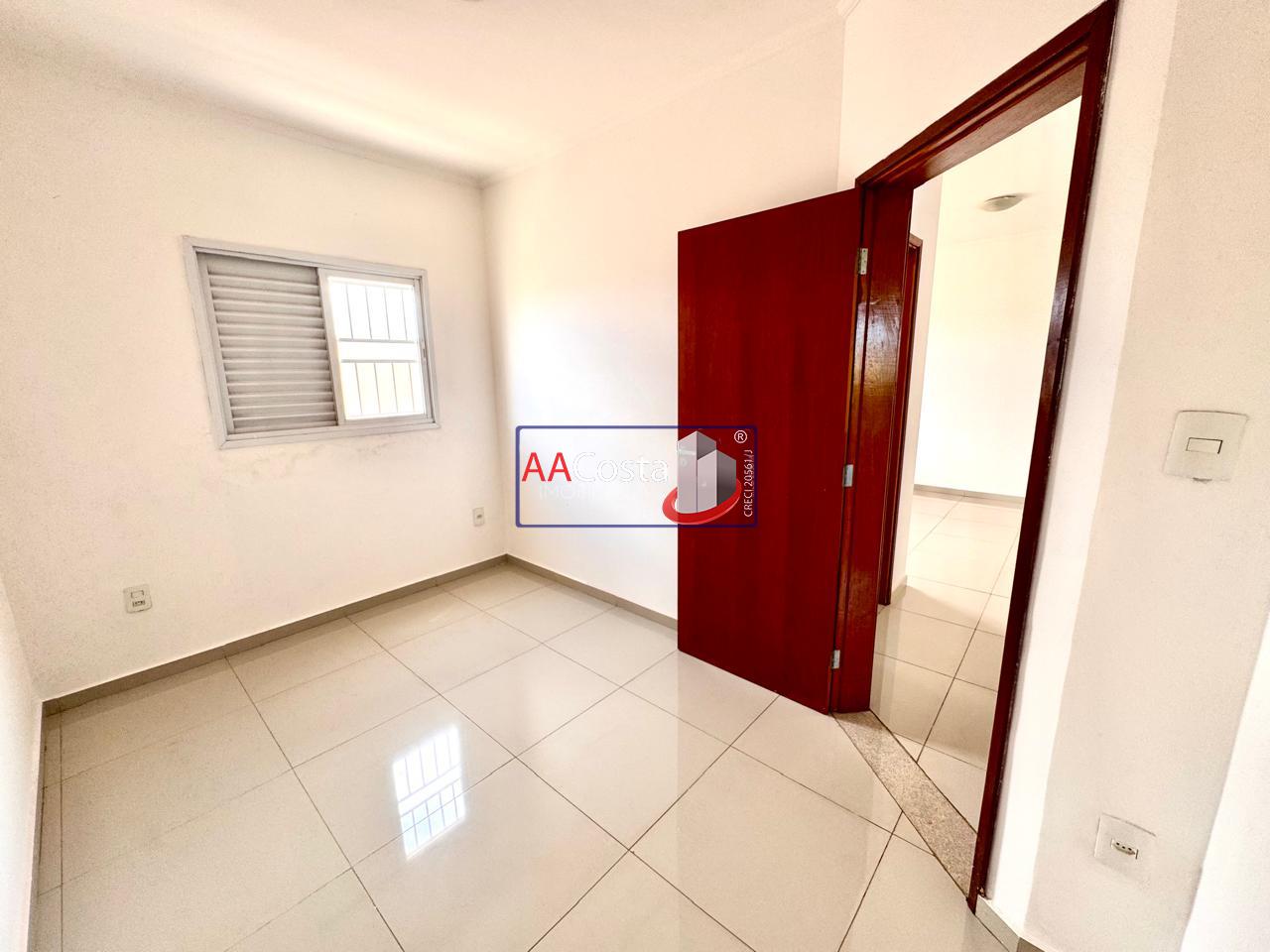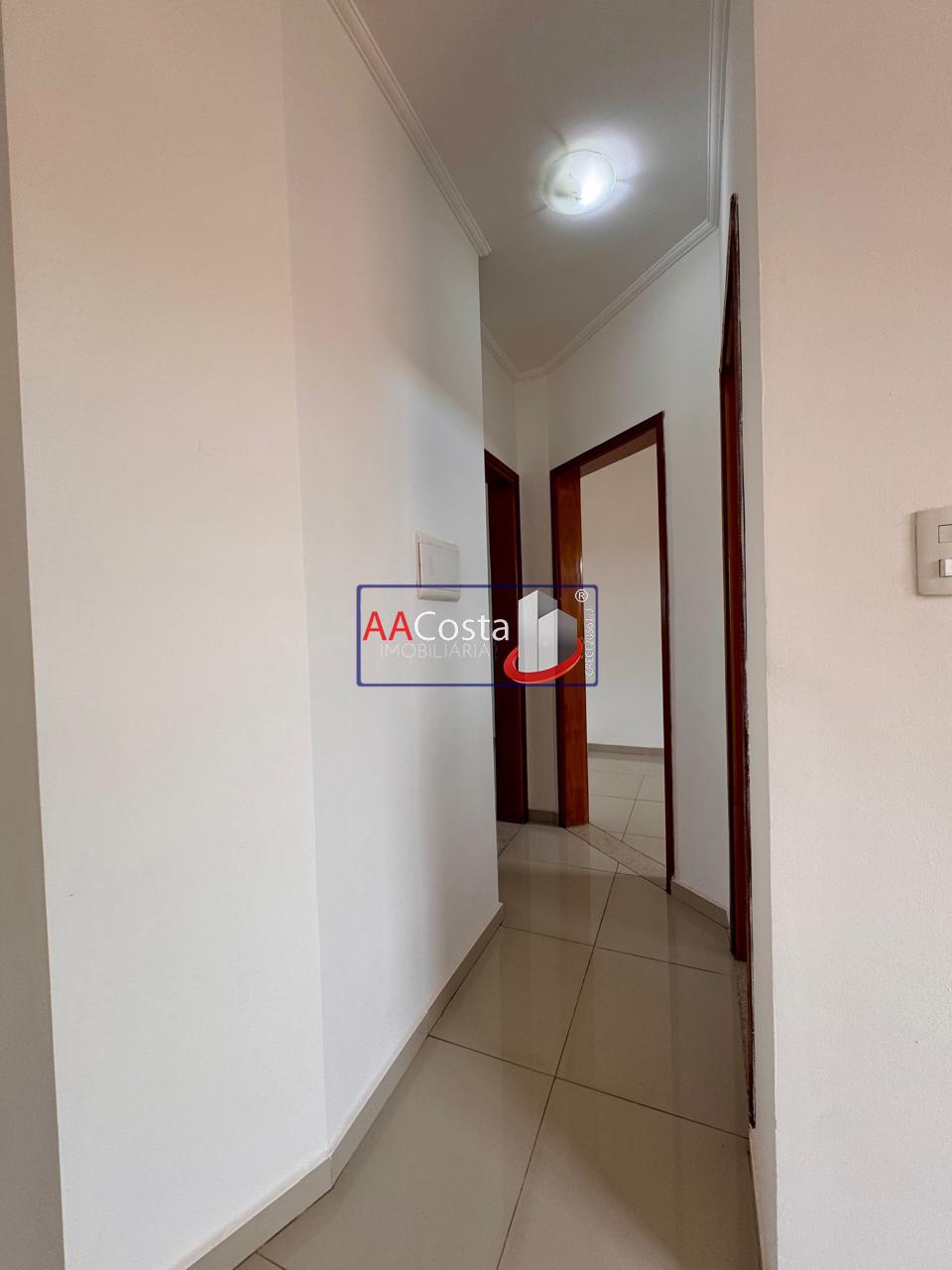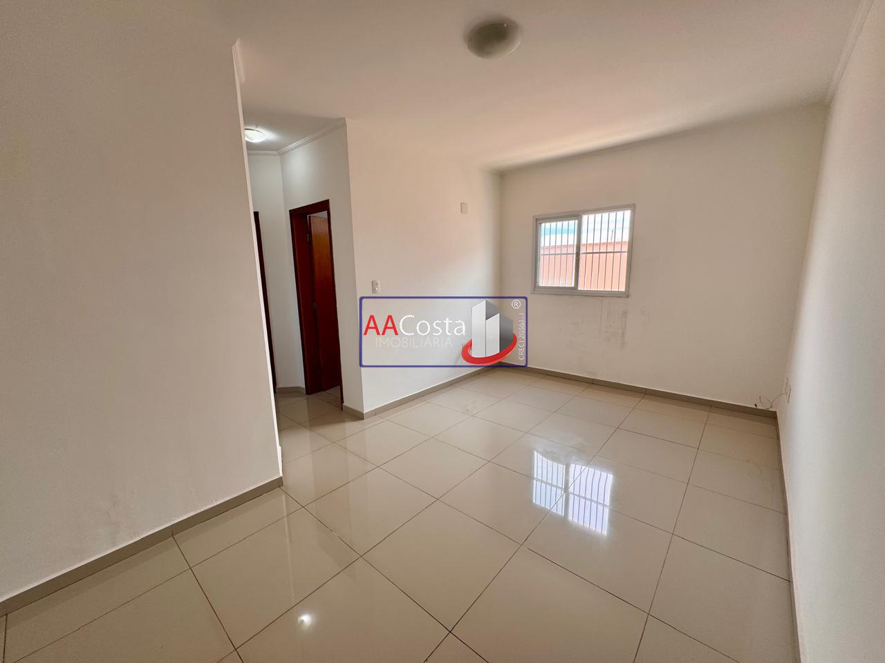 Apartamento com 02 quartos sendo 01 suíte, 01 banheiro social, sala de TV, cozinha com armários, área de serviço, garagem coberta para 02 carros. O prédio não possui elevador.