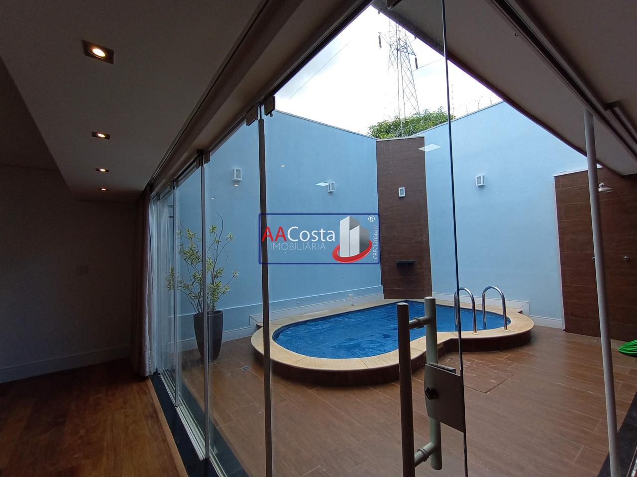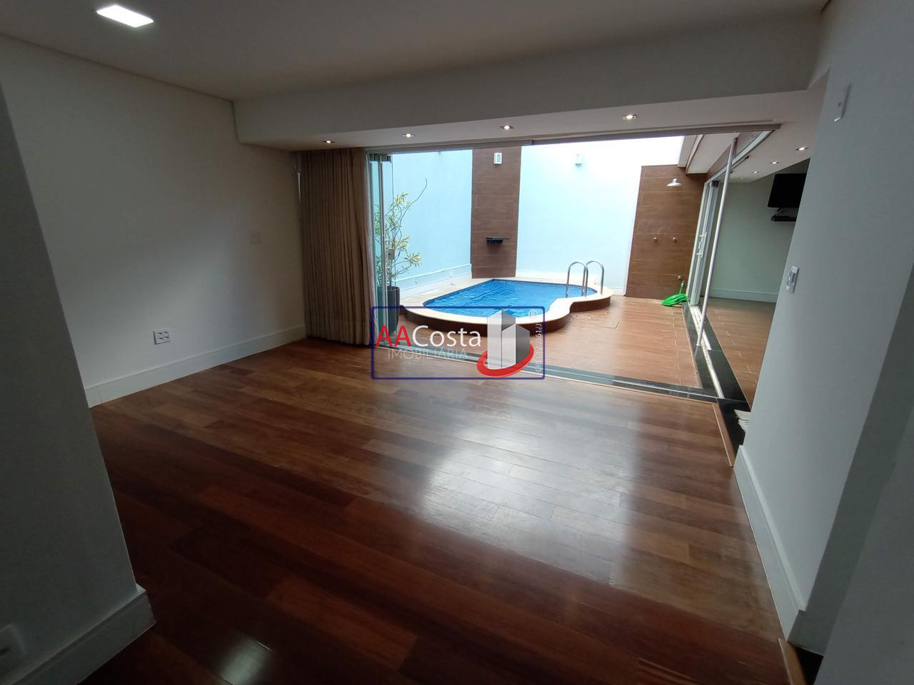 Casa tipo sobrado com 3 quartos, sendo 1 suíte, 4 banheiros, copa, cozinha, sala de jantar, sala de TV e sala de estar. Possui área de serviço, é rica em armários e conta com piscina aquecida com cascata e hidromassagem. A garagem acomoda 5 carros, com espaço extra para mais 4 vagas. Dispõe também de uma área gourmet completa, ideal para lazer e confraternizações.