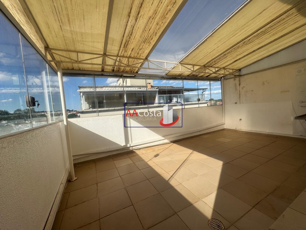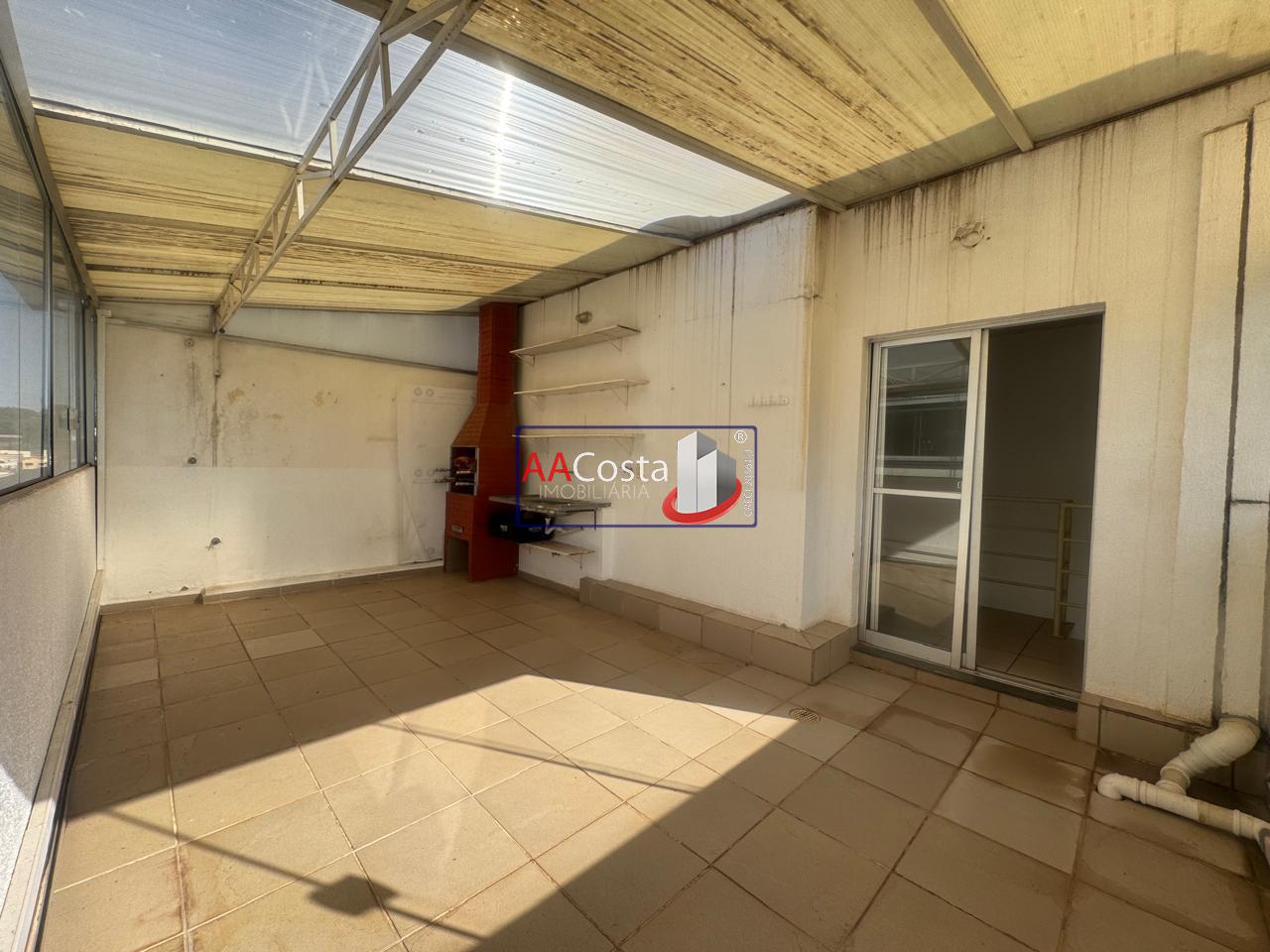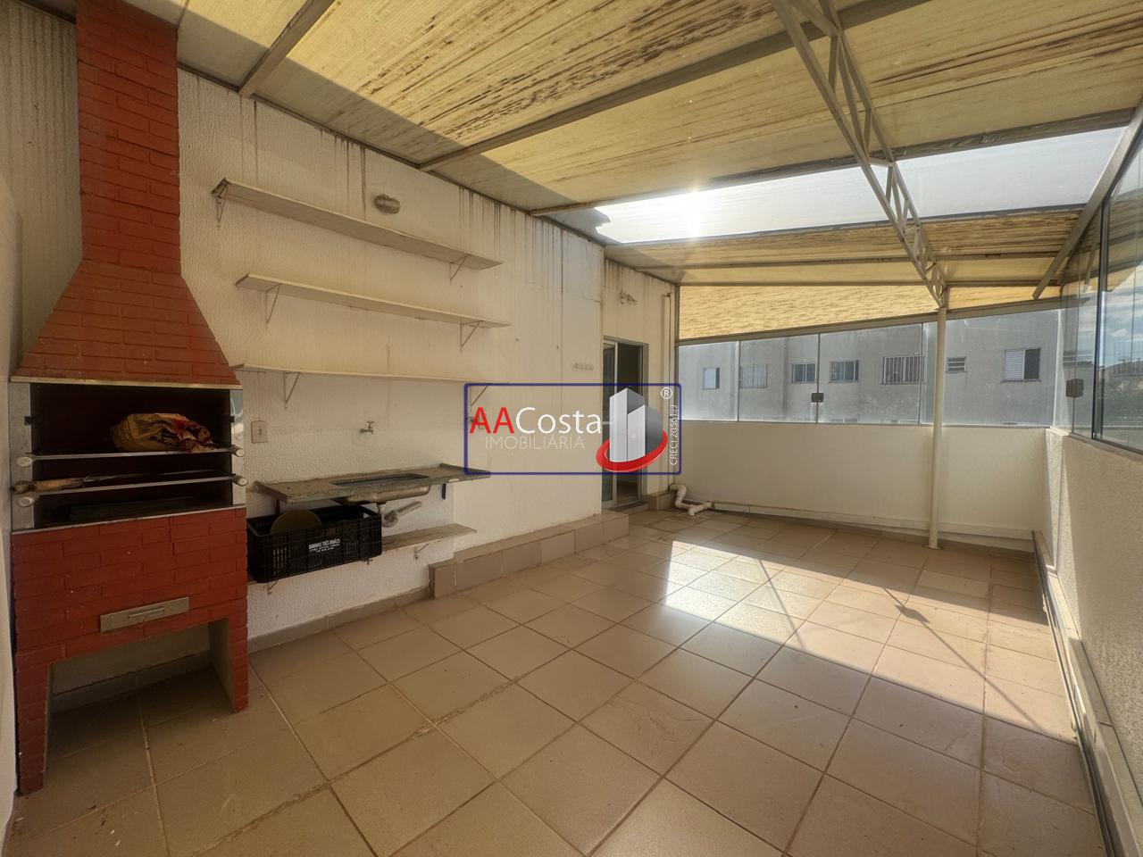 Apartamento com cobertura, area externa coberta com churrasqueira, sala de estar ou TV e 01 banheiro. Piso inferior com sala deTV, cozinha, lavanderia, 02 quartos, 01 baheiro social, 02 vagas de garagem, condominio com portaria 24 hora, salao de festa, playground, piscina adulto e infantil, quadra de esportes, incluso agua e gas. Predio sem elevador.