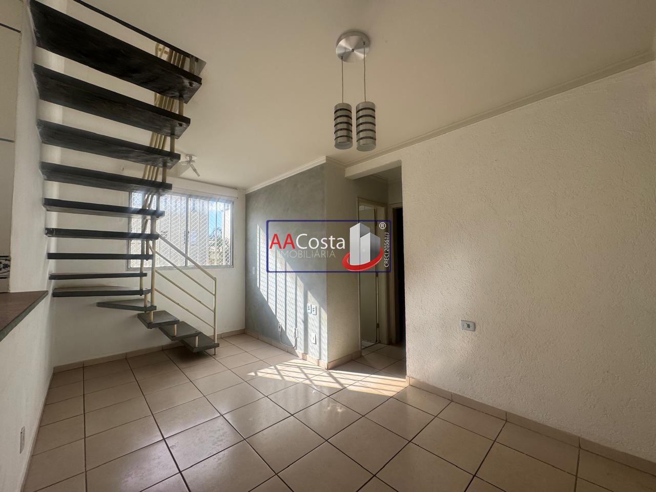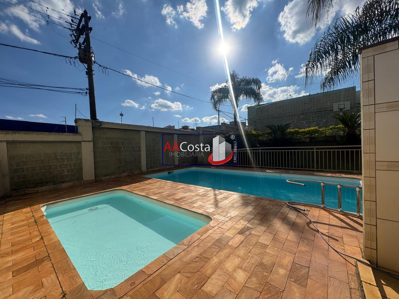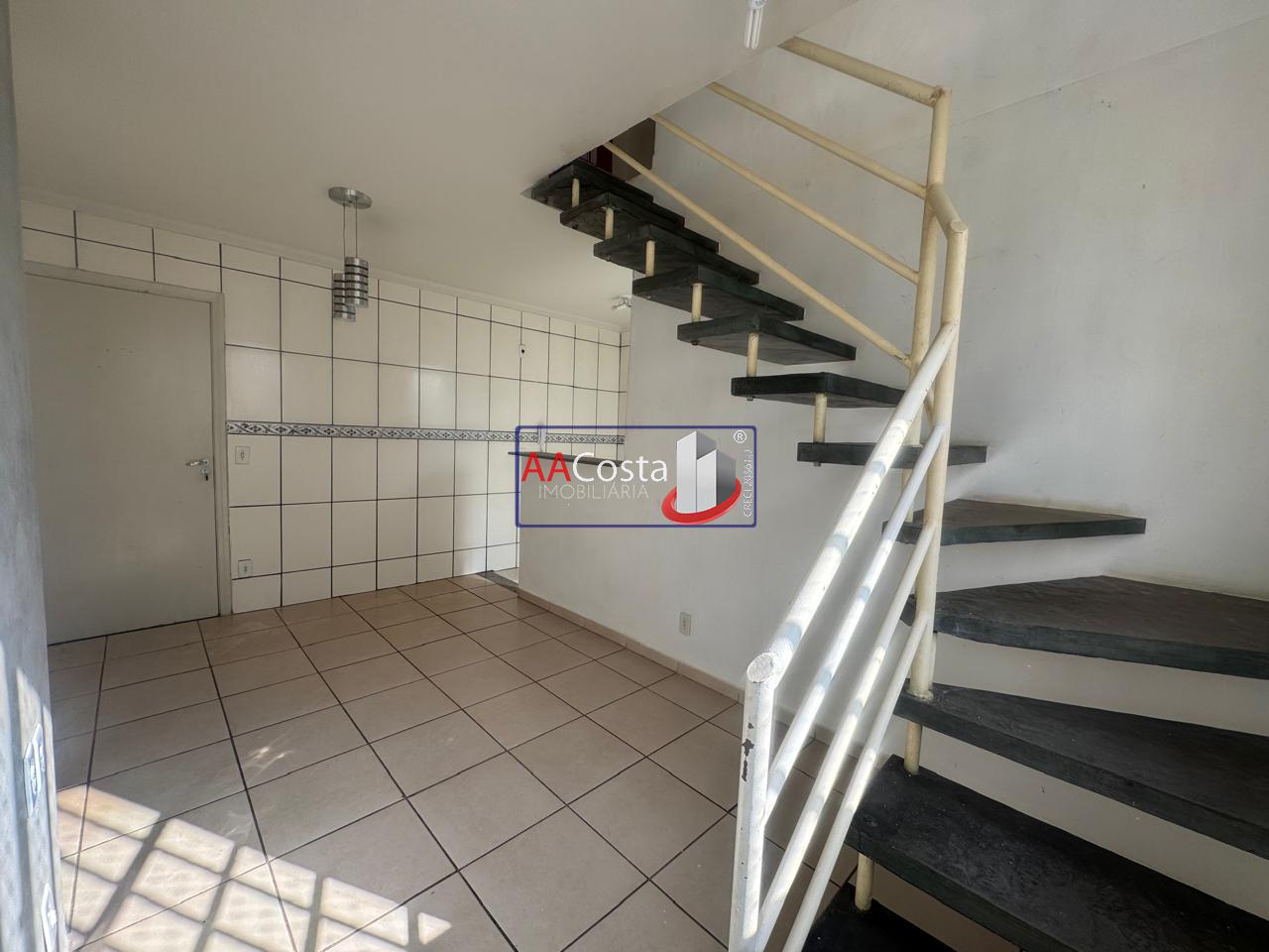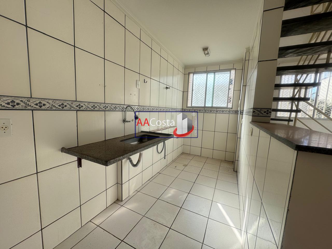 Apartamento com cobertura, area externa coberta com churrasqueira, sala de estar ou TV e 01 banheiro. Piso inferior com sala deTV, cozinha, lavanderia, 02 quartos, 01 baheiro social, 02 vagas de garagem, condominio com portaria 24 hora, salao de festa, playground, piscina adulto e infantil, quadra de esportes, incluso agua e gas. Predio sem elevador.