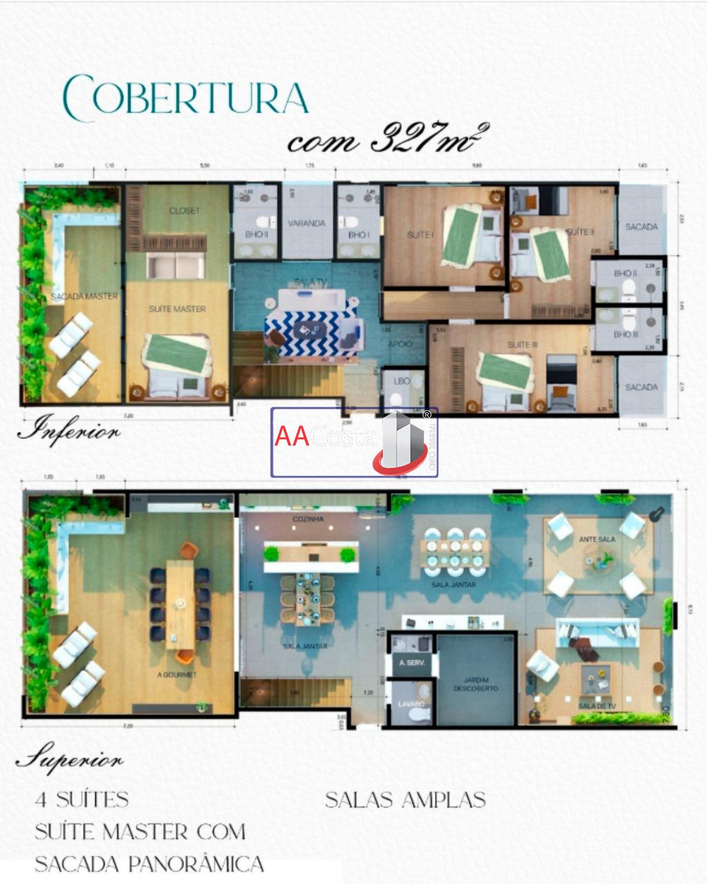 03 Suites amplas, 02 coberturas duplex exclusivas, cozinha gourmet, saca panoramica com vista privativa, sala de estar de TV integradas. Condominio completo alto padrao, espaço kids, piscina borda infinita com vista para represa, pub e sala de jogos, pet care, espaço cinema, academia moderna e adequada, acesso direto a agua, refugio a beira da represa
