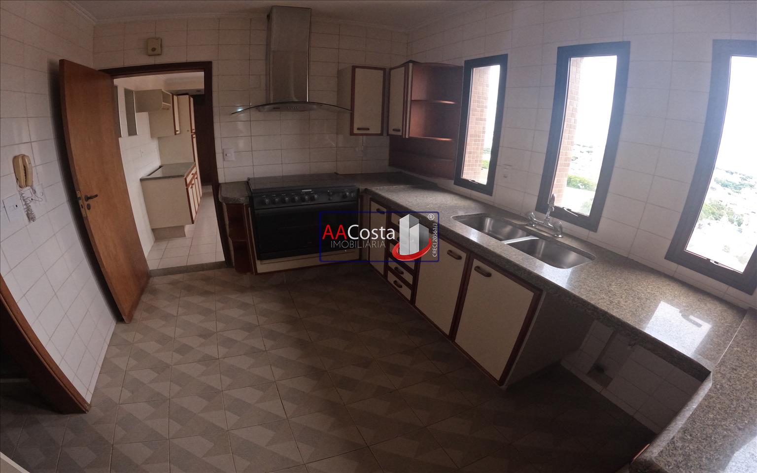 Apartamento no 12º andar, com 03 quartos com armários, sendo 01 suíte com sacada, ampla sala com sacada e lavabo, banheiro social, cozinha com armários, fogão e coifa, área de serviço com armários e banheiro, despensa com prateleiras e 02 vagas de garagem cobertas.