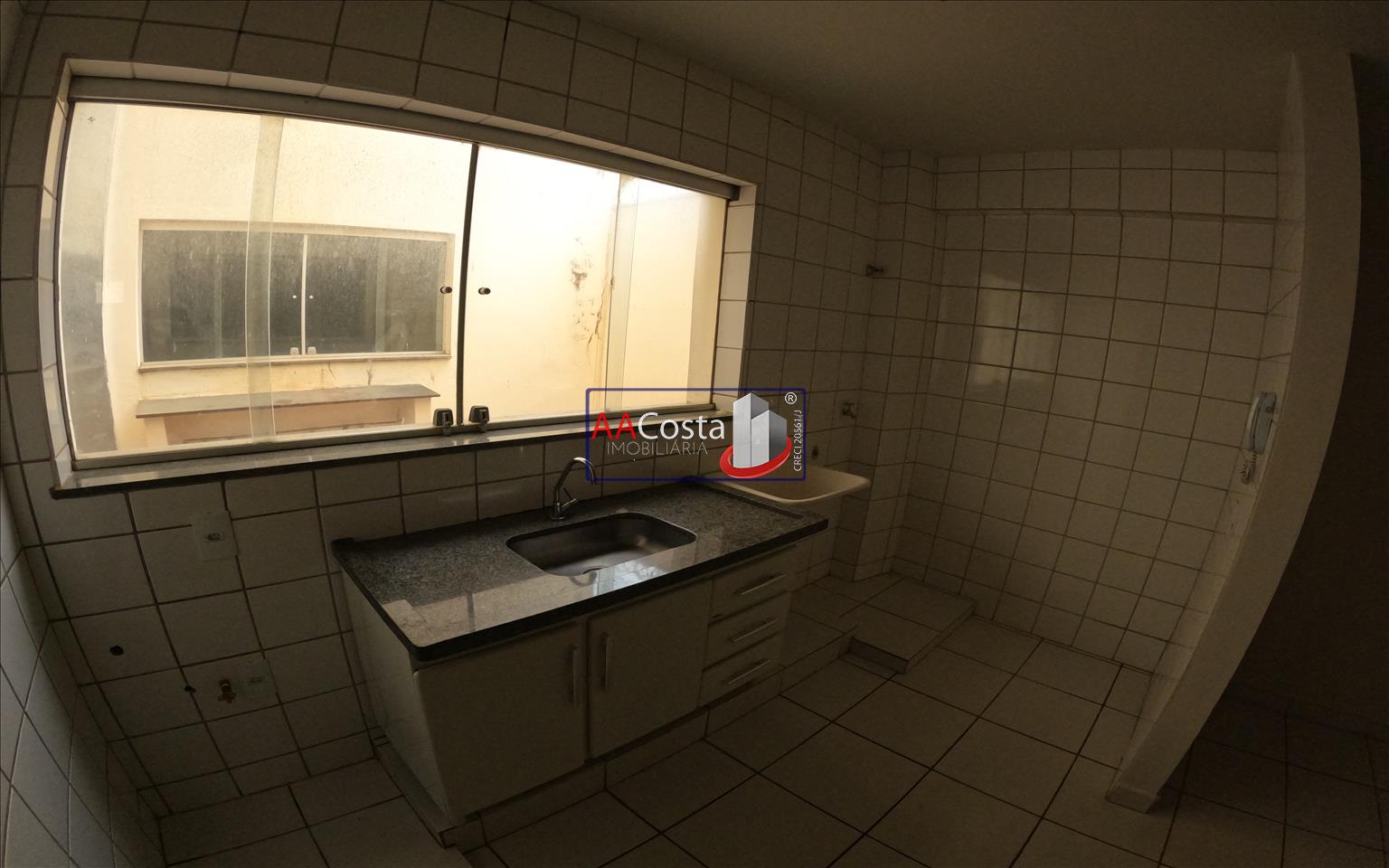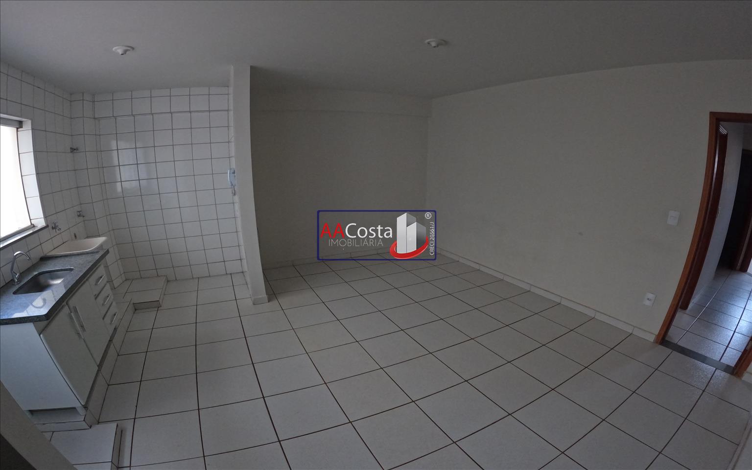 Apartamento no 1° andar, 02 quartos com armários e sacada, sala e cozinha conjugadas. Garagem coberta para 01 carro.