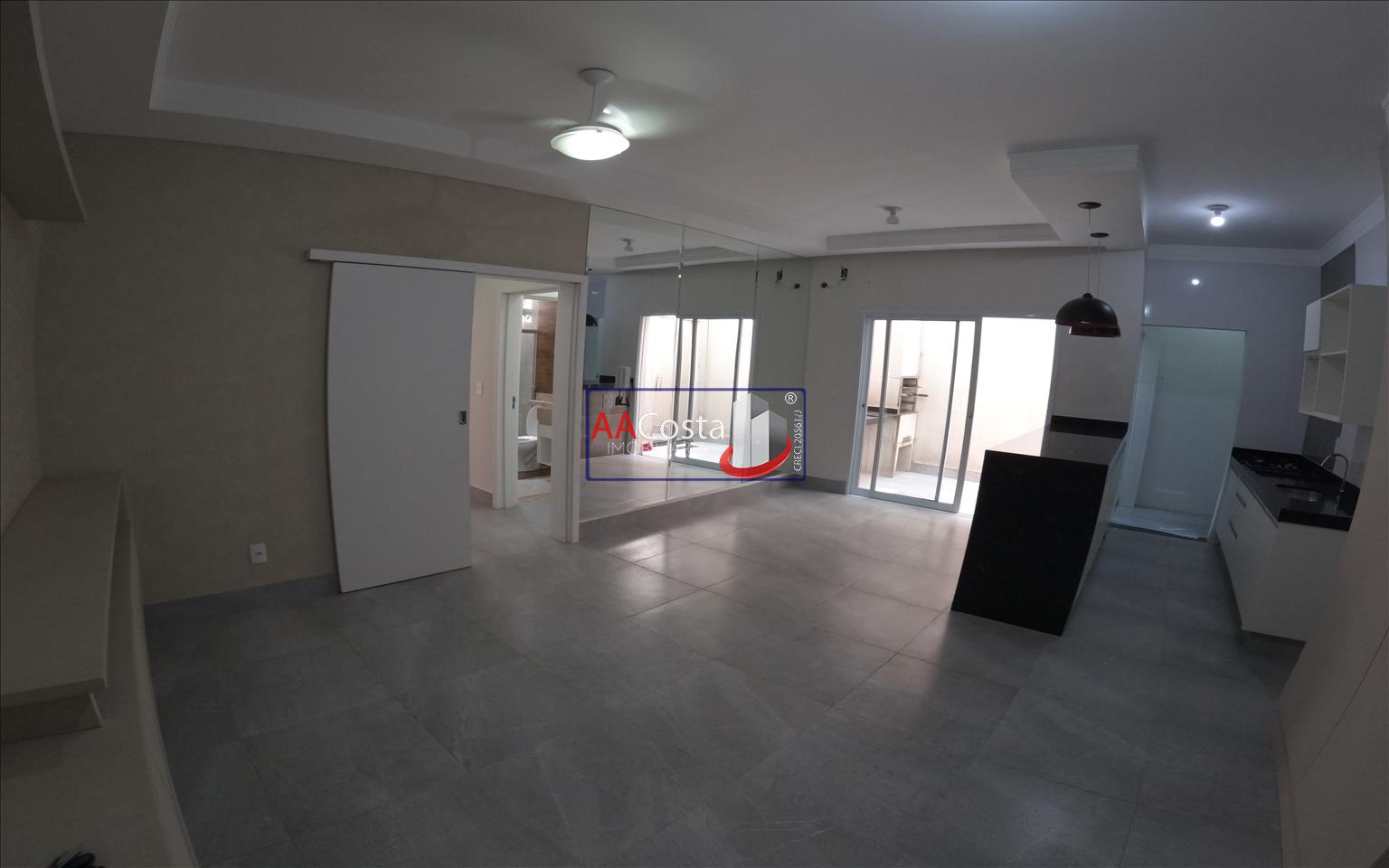Apartamento térreo, com 02 quartos e armários sendo 01 suíte. Ampla sala com área gourmet, cozinha com armários, área de serviço, banheiro social e 02 vagas de garagem.