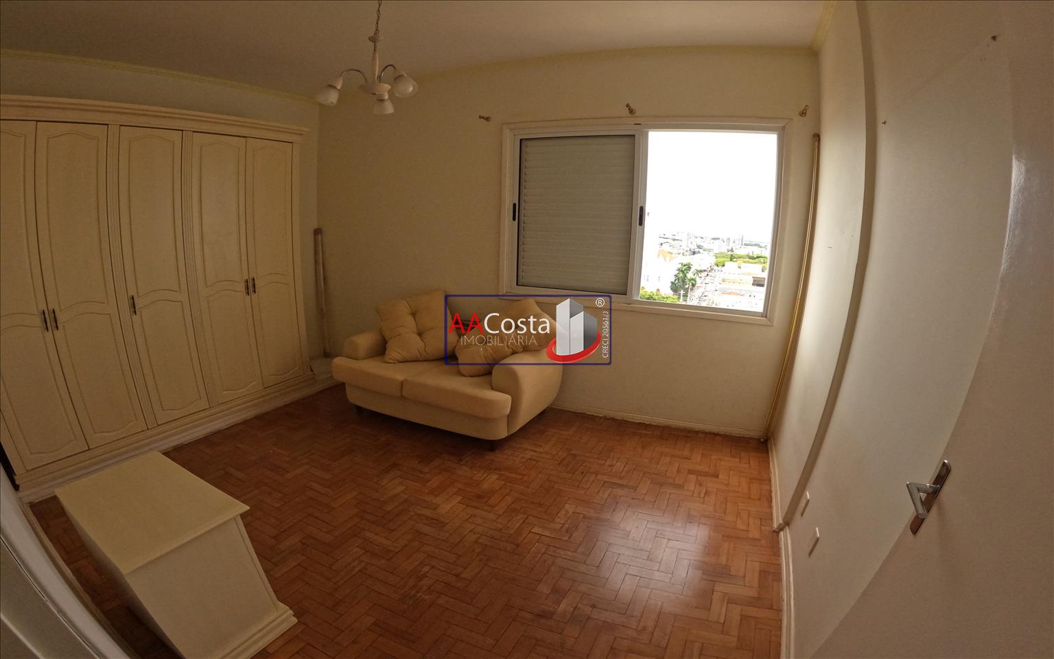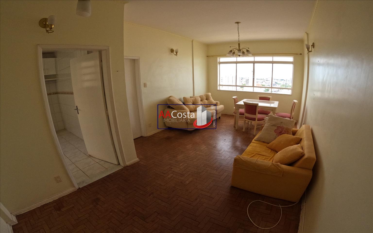 Apartamento no 11º andar com 02 quartos, sala, banheiro social, cozinha com armários e lavanderia com banheiro. Imóvel sem garagem. Mobiliado com sofás, mesa, mesa de centro, armário, guarda-roupas e penteadeira.