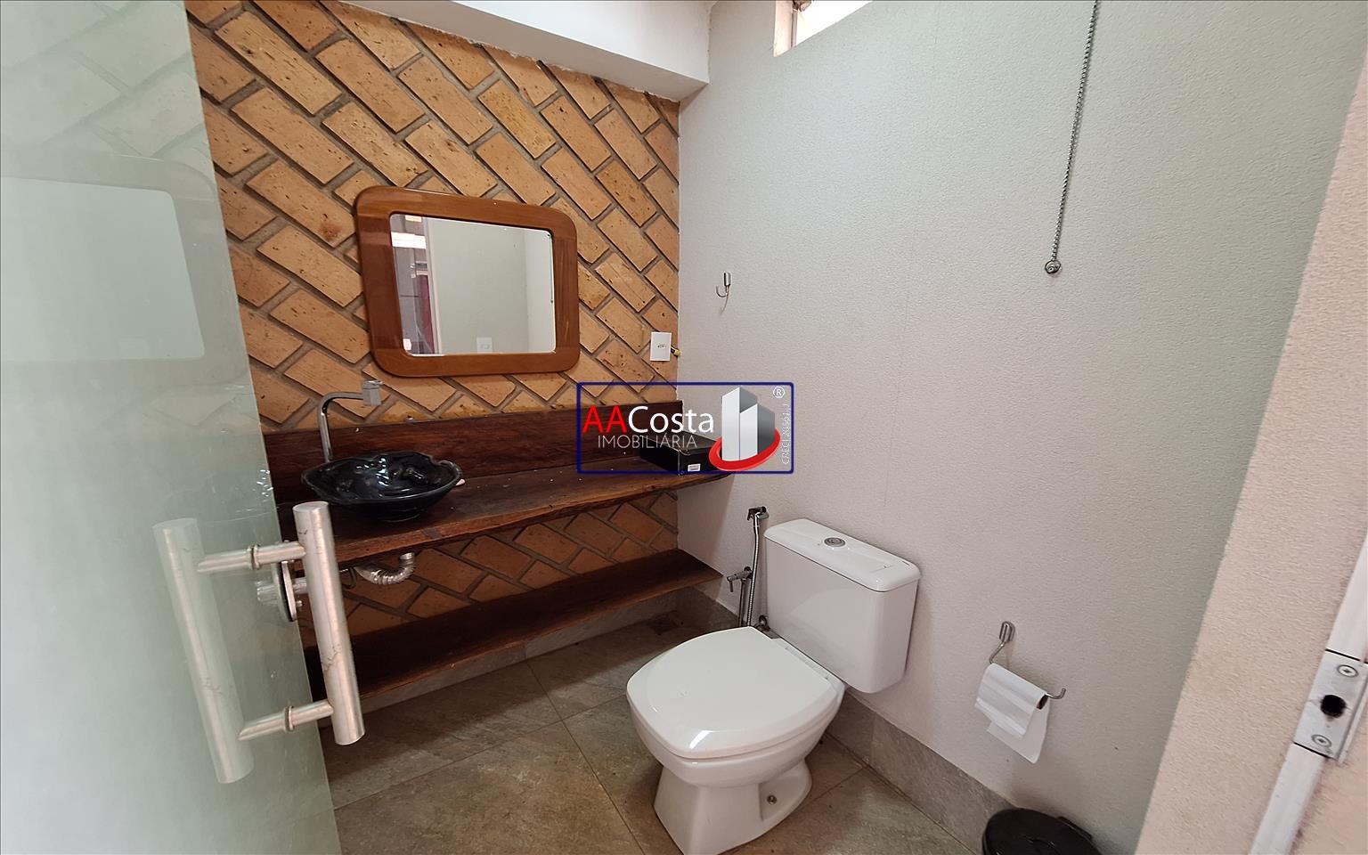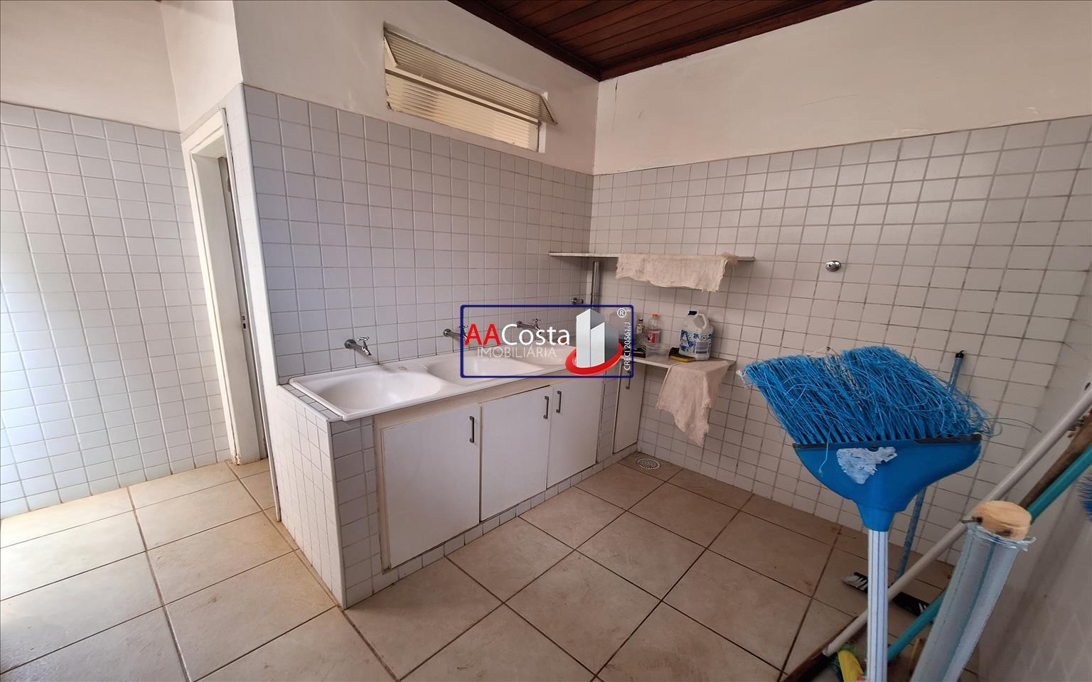 Casa de alto padrão com hall de entrada, sendo 03 quartos, com ar condicionado, sendo 01 suíte com closet e banheira, suíte com closet, e 01 quarto com armários, banheiro social, sala de tv, escritório com estante, amplo salão com barzinho modulado com pia, lavado, sauna com banheiro, cozinha modulada com cooktoop ,coifa, armários e dispensa, lavanderia com armário, banheiro, área de lazer com 02 piscina 01 normal e outra hidro aquecida, quadra de basquete quadra de squash com banheiro e 02 dispensa, garagem coberta para 02 carros e garagem descoberta para vários carros