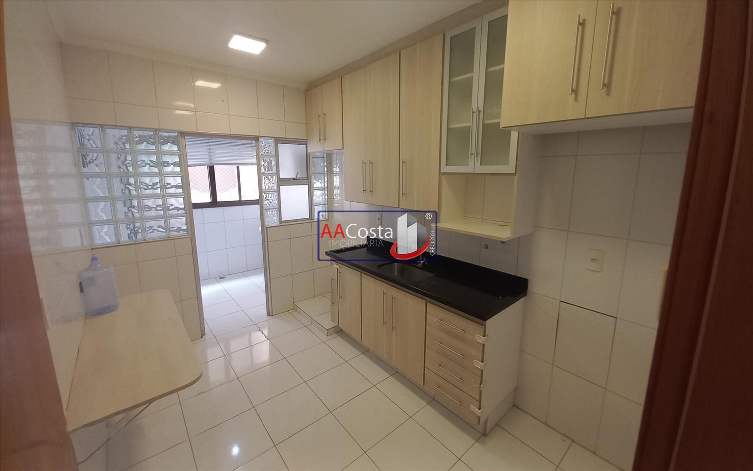 Apartamento no 1º andar, com 03 quartos sendo 01 suíte, sala com sacada, cozinha com armários, área de serviço, banheiro social e 02 vagas de gaveta cobertas.