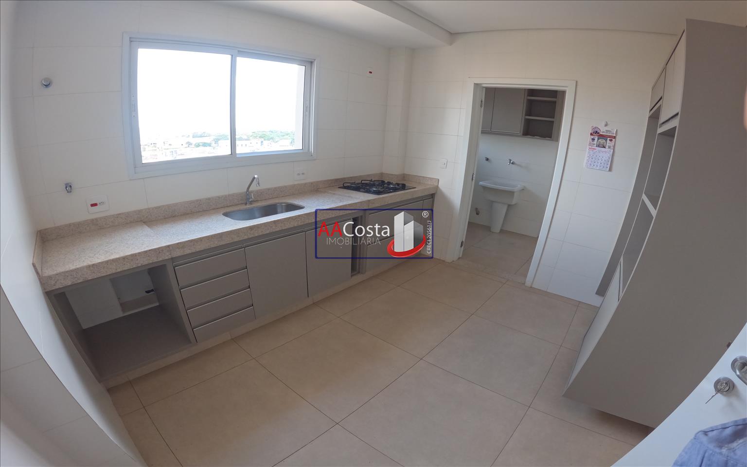 Apartamento de 03 dormitórios, todos com armários, sendo 01 suíte, 02 sacadas, banheiro social, sala para 02 ambientes com sacada, cozinha equipada com cooktop e móveis planejados, área de serviço com lavabo e garagem.